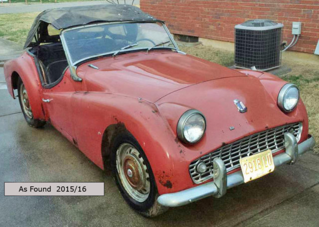 1959 Triumph TR3A, in dry storage from about 1978 to 2015. Original car down to spare tire, jack, engine crank, TR3 owner's manual and service receipts dated mid-1970s in glove box. Many new parts from Moss Motors and/or NOS are included in this sale. (see list) I started with Triumph TRs in the 1970s and today own several restored TRs. I did not need another TR. I almost passed on this car because the engine had not run in 36+ years and would not turn by hand. However, the transmission shifted freely and clutch linkage worked. So considering this nearly 60 years TR was NOT a weathered, run-down basket case missing parts, I took a chance. What did I buy, a restoration or "parts car"? Answer: The car is a very good candidate for restoration. EVALUATION OF CAR Engine: The front apron removed, engine/trans pulled. Engine disassembled: one piston frozen to sleeve, easily fixed. The engine turns freely and was reassembled "finger-tight" ready for rebuild (Note: Piston rod bearings/pushrods/tappets/pressure plate/clutch saved but not in engine at this time) Frame: A visual inspect shows frame to be ok. However, unless I pull the body off the frame I can not speak to the complete condition of the frame. The frame looks ok, a bit rusty with no observed issues. Body: Yes rust in the normal areas for British sport cars: floors, rockers, fenders. The interior, gas tank, dash and old wiring harness were also removed to get a complete picture. Conclusion: normal rust considering age and type of car, can be repaired. I have seen worst. Lessons learned from previous restorations: ALL PARTS, including nuts and bolts, were tagged and organized. The new owner will NOT receive large, jumbled "boxes of parts" to search. Interesting Find: Early hot rods were referred to as "lead sleds" because of lead repairs in the body. The chrome piping over each fender was removed and a "lead-sled fix" was used to spot braze the fenders to the body, then bondo was applied. The brazing was/is easily removed with a Dermal tool. No rubber hoses/seals, carpets or wheel well trim could be saved. All gauges in good shape. Leather seat covers dry/ brittle to the touch. One seat spring is bad, the other is just ok. Generator mount broken. Side curtains are ok. Windshield has small crack at bottom corner. Convert top shows age. This TR3A has sat in my garage/workshop since 2016. Now retired, the TR restoration I was working on at the time of this TR3A purchase is nearing completion. Reason for selling: A 1960 MGA was acquired a few months ago. Either the MGA or TR3A must move to off-site storage simply due to workshop space issues. I decided if I get the price I want, the TR3A will be sold. I would like to sell and not store. (Perhaps my days with TRs have ended !) NEW PARTS included in this sale – (a lot of parts, all new from Moss Motors) Floors and rockers, exhaust head pipe and gasket, engine mounts. Pistons & Liners (set of 4) including piston rings, set of pushrods and tappets, complete head gasket set, camshaft sprocket, crank sprocket and shims, timing chain, chain tensioner/pedestal, tension anchor, timing cover oil seal, oil deflector, tab washer set. Wiring harness, generator, hi-torque starter, rear shocks, missing front apron "TRIUMPH" letters. Brake and fuel metal pipe set (bend to fit), brake/clutch fluid reservoir and lines. Also an extra front fender, drivers side, comes with the car. TERMS/Pick-Up I can not deliver the car, pick-up only, however the car is 1 mile off I-71 near Mason, Ohio just north of Cincinnati. Very easy access to car for loading / I will assist with loading if needed. Payment by certified bank check ONLY, no cash, no personal checks or MO of any kind. A $400 non-refundable deposit is required within 24 hours after the end auction, no exceptions. I have a clear title for this car. I will work with buyer regarding possible installation of engine, trans, radiator, front apron/grill and steering wheel. Wiring harness/gauges will be buyer's responsibility. Finally, I am here to sell this car in a professional business transaction, not to play games. Email me with questions, but being retired, I no longer "live on email". |