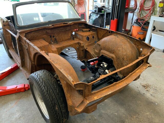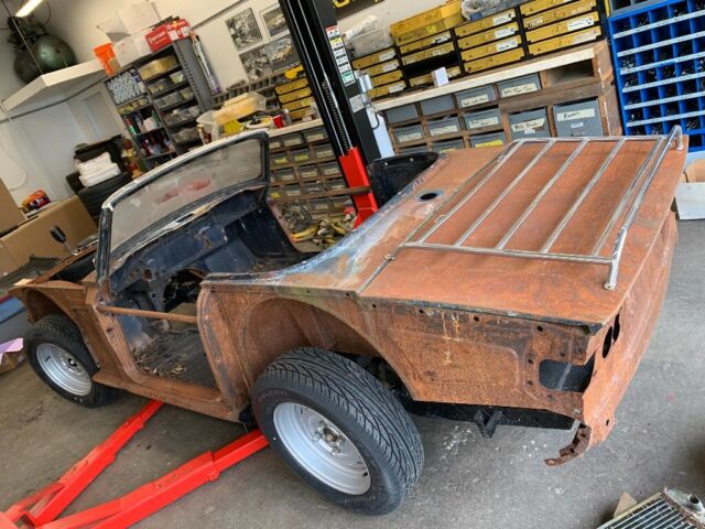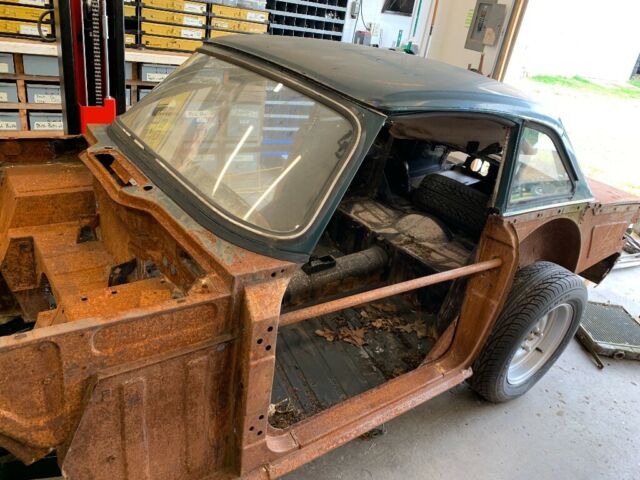 | This car had the body off the frameFrame was painted and suspension appears to have been doneThe shell of the body Does not appear to have any rust holes I believe it was sandblasted or strip and sat out under tra, now is covered in surface rustThe hardtop has bad rust at the rear backWhat you see for parts is all that comes with the car I have no fenders doors hood grills Interior etcHas five brand new tiresUse the shell to restore your rusted out or wrecked TR6Clean titleNo reserve auction starting at the price of the tires |