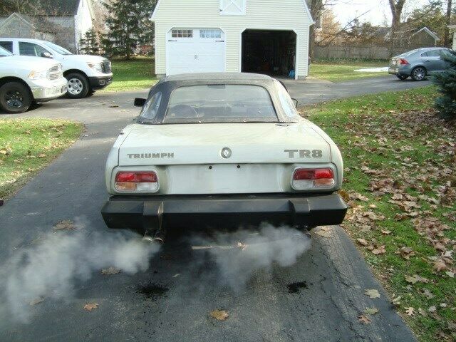 | One of the lowest mileage TR8 in the country. This vehicle was in long term storage with many classic cars when a fire damaged the building. The TR8 only has paint damaged and dents on the drivers side. Both taillights lens and side marker lens were distorted by the heat (housing are fine) The car will need paint work. I have only driven theTR825 miles and it runs great. The vehicle has a Pennsylania salvage titleand you will have to have it inspected by your state for a clear title. Please do not bid unless you plan to buy. |