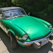 For Sale 1975 Triumph TR6 Location : Auburn KS – about 10 miles SW of Topeka KS –about 70 miles from Kansas City. I have owned this car for almost 40 years. My goal in providing this information is to be honest with a potential buyer and try to tell them everything I can remember, good and bad, about the car. There is no way I can recall everything that may be an issue, but I am doing my best to be as complete and honest as my memory will allow.Please note my 100% perfect ebay sellers rating.Car is being sold “as is” with no warranty of any kind. It has never been restored. During the 38 years I owned it I just did routine oil changes,tune ups, valve adjustments, trans and diff fluid changes, etc. and any necessary repairs including replacing wheel bearings, tires, brake pads, differential oil seals, etc. It has never been in any professional repair shop since I have owned it.The new owner will need to do some work, or have work done, to get the car back into 100% correct running condition. There will likely be some minor things not listed here that need attention. Since I have owned It has always been “garage kept”. During the 38 years I have owned it I have put less than 10K total miles on it. Photos : I have taken over 100 photos showing many areas of this car. Due to listing limits, I have only included some of them. If there is any area of the car that you want more photos of, just ask. Videos : Listing of videos viewable on You Tube (sorry about the wind noise) https://youtu.be/W8mtDi5L1l4...... Walk around top up https://youtu.be/LdMiYvK9ECY...... Warm start up https://youtu.be/rGoZEYTC8WA....... Short Drive / Exterior / 1st, 2nd3rdgears https://youtu.be/O9npcXOGCks .........Short Drive / Interior / 1st, 2nd, 3rdgears https://youtu.be/liSwSptOHGc .... Cold start / interior view https://youtu.be/M8lw1FPkZTg ..... Cold Start Engine Comp https://youtu.be/NHZ0Uo2osA0...... Top down walk around Body : I believe the paint is original. There are many nicks and scrapes and swirls, some fading on passenger door, and areas where the pinstriping has peeled off. No major visible rust. The left front headlight area has some metal that has been crushed in – it was like that when I purchased it (see photo). The left front door has a crease in it where it hit a garage wall while I was backing out with the car door open, andthe left front fender in that area has a crease also from the same incident. (see photo) The door opens, closes, latches correctly but does not have the check strap. I have an extra door (white) that I purchased but never got around to installing –this will go with car if you want it. Rocker panels – some large dents that were there when I purchased it. Not very visible unless you look down low. Some peeling of the black protective layer on rocker panels Glass – no cracks in windshield or door windows – up / down crank on windows is loose with free play. Frame : In very good condition for its age. Photos from underneath show frame and floor panels with only mild surface rust. Frame looks good with no known repairs. I folded back the front floor carpets to look at the metal floor boards, but there is a “pad” glued down between the carpet and floor boards. I tore a couple of small areas of pads open and the floor boards look in very good condition. Trunk has no rust. Spare tire is included. Tires : Michelin Redlines. I purchased them new in 1984 – still plenty of tread, and the tubes have never been patched. Hold air, and just need a few lbs put in each year. Engine : I have never done any internal engine repair –never had the heads off, etc. I just replaced oil every year or two, changed plugs a few times, adjusted valves, points, timing, dwell, etc. I added a retro fit oil filter adapter so it takes a standard modern oil filter. Carbs are standard Zenith Stromberg 175-CD that I just re-built. Bottom of engine is showing some oil leakage which is likely coming from oil pan gasket but I am not sure. Carbs – I did rebuild them a few months ago, and I did balance them. The chokes are not working properly – the cables pull “up” the choke mech OK, but don’t seem to want to push the mechs back down when choke knob is pushed in. This may be due to wire in cables flexing. May need new choke cables. Emissions – there is hose coming from intake manifold that goes to charcoal canister that broke off at the cannister – I am including a brand new bottom section of cannister that can be installed to re-connect hose, although it has been running without this hose connected for years. Distributor - At some point prior to my purchasing the original distributor may have been replaced as it has both a vacuum advance and a vacuum retard, and the OEM for 1975 only had advance. Starter - there are times when the starter does not engage the fly wheel on first key turn. – it’s done this since I purchased it 38 years ago.I would say 90% of the time the starter correctly engages first time key is turned. Normally if it does not engage on first try, it will engage on 2ndtry. Transmission : Works correctly – this is a four speed – it does not have over drive. Some minor leaking in both transmission and differential areas but not enough to leave any puddles on floor. Brakes - I just bled them and they feel strong and even. Clutch – currently works but will need repair. I believe the issue may be a common problem with many Triumphs, with the pin that holds the fork to the shaft breaking or wearing (it could be something else?). A number of years ago I did some quick repair as the clutch would not fully dis-engage and I did not have the time or money to fix it properly. I added some spacer washers to move the slave cylinder assembly forward to compensate for the assumed broken or worn pin. It is drivable but needs correct repair. Normally, the clutch will disengage between 1-2-3-4, but sometimes you may have to pump it a few times to get it go into 1st fro