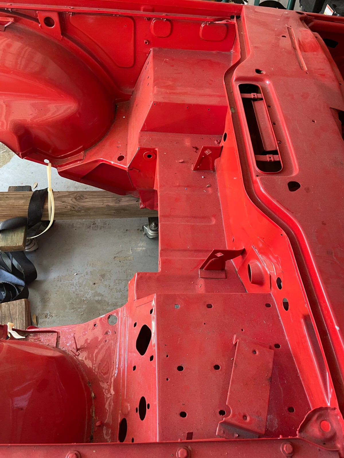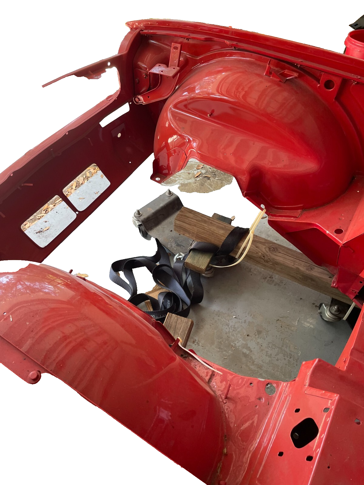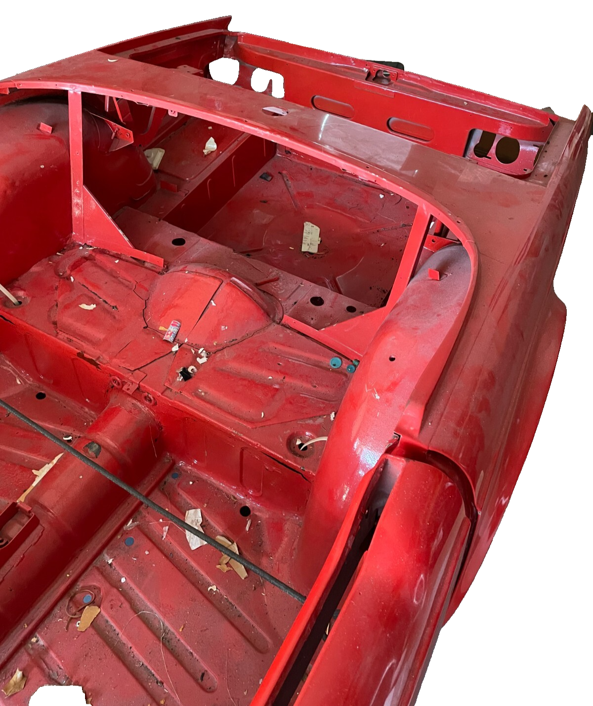 1974 Triumph TR6 - Body Shell and Chassis Plus Hood, Deck Lid, and Windscreen, Correct VIN tag on Windscreen. Frame off Restoration Refurbished Body Shell with Hood and Trunk Lid - Media Blasted, White Epoxy Primer, Base Coat Clear Coat - Sprayed with Dupont Pimento Color Repairs Performed - Replaced Right Front Wheel Arch, Bulkhead, Floor Pans, all Replaced panels were NOS Red Oxide Primed panels. Refurbished Chassis - Blasted, Green Epoxy Primer - Sprayed with Corrosion Resistant Black Sealer Body is NOT mounted to the Chassis