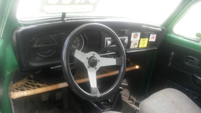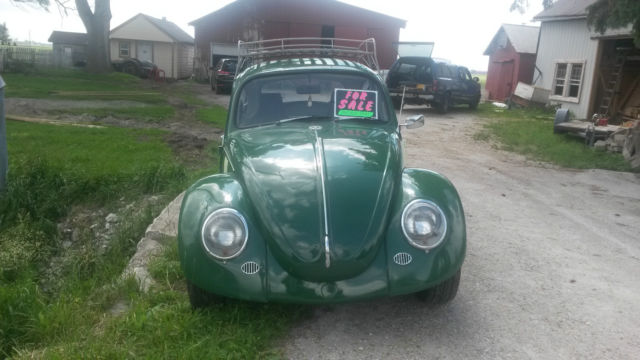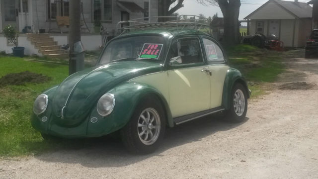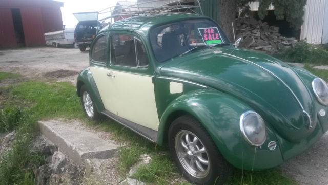 | VW Beetle Pan off rebuild no rust, reen with Yellow two tone. 1641 engine less than 4000 miles, rogressive carb. New 009 distributor, ew coil, ew Alternator, 960 California style front fenders, luminum wheels Tries new last year. Bamboo tray under dash, uggage rack on roof. This is a good running car no known problems. Started right up after winter storage. |