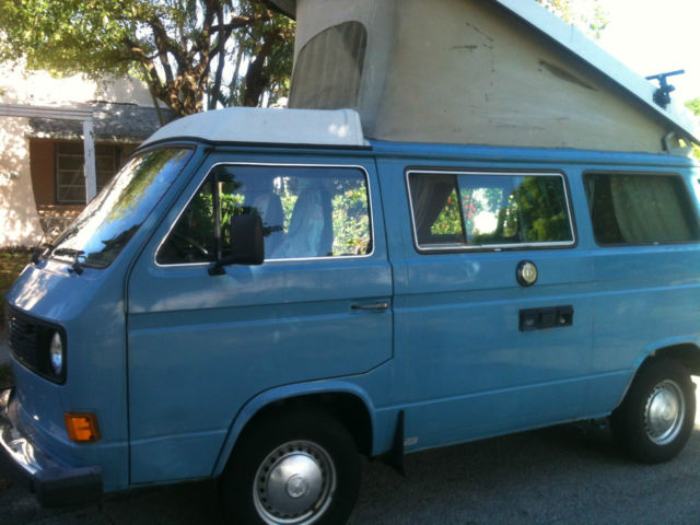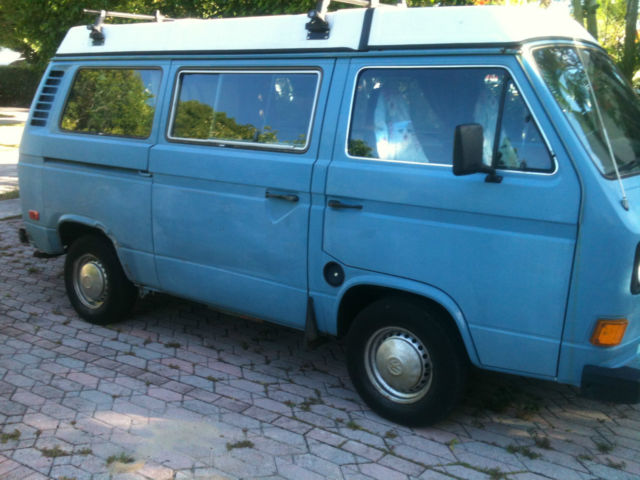 1981 Vw Westfalia van. The van both runs and looks good for its age. I have owned the van for 3 years. It is from Montana, ut currently in Florida. It does have a few dents and dings here and there, othing major. The rear bumper has a dent on the driver side. The windshield is cracked. The stove, ink and fridge appear to be in good working order,although I havenever tried to use them. There is a small amount of superficial rust on the van, nd 2 small rusts spots under the front of the pop-top. Thecanvas for the pop top is in good shape. No huge tears or holes. Theodometer does not work andhasn't worked since I have owned the van. The person I bought it from said it was arebuilt engine with maybe 80,000miles? It is anair-cooled engine, uns and drives great. I drive it everyday (short distance) and keep up with basicmaintenance, il change etc... I did recently replace the starter and ignition switch, ew battery. Its a great van, ut I recently purchased a sailboat andcan't afford to keep both. I hate to sell it. Please feel free to contact me with any specific questions. Pick up only for the van, o shipping unless the buyer would like to arrange that. The van is in West Palm Beach, lorida 33401. Purchase shall be through paypal.