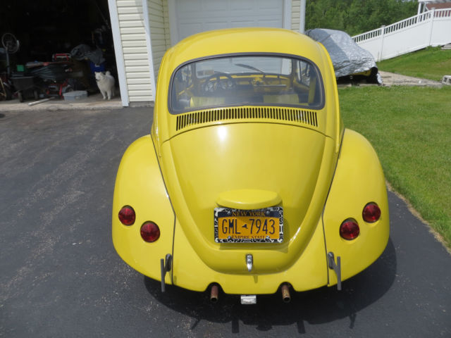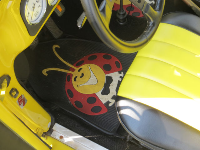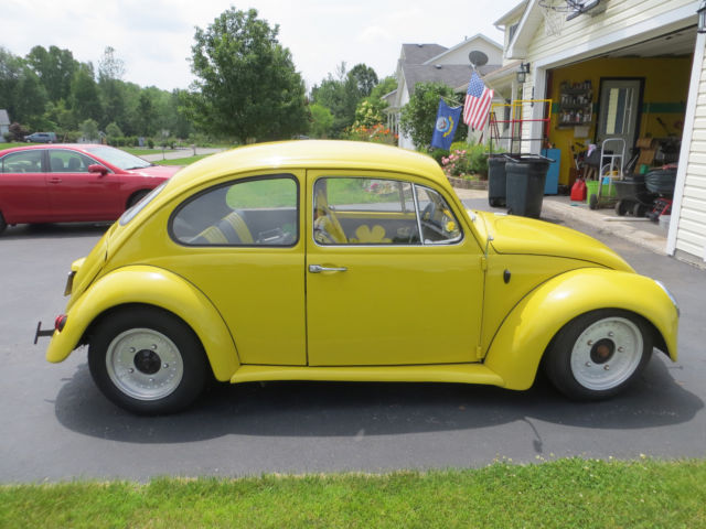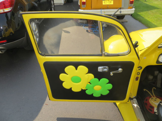this is a completely redone 1967 vw bug. I redid it for my daughter and now she doesn't want it my lose truly our gain. what was done 2 inch widen front fenders 2 inch widen rear fenders running boards to match new interior from SewFine out of Texas flower style pattern yellow and green flowers seats are yellow and black all new but frames new headliner blackwith yellow trim new carpet inside and trunk brand new floors brand new rockers brand new disc breaks brand new and working heat exchangers(yesyou get heat) all new modern gauges- speedometer oil and fuel gauges will be fixed priorto u picking it up. They work but just need to be tweaked This is a great car. IF YOU WANT TO COME AND TAKE A LOOK AT IT PLZ EMAIL ME. ask as many questions as you would like before you bid or purchase the Bug NO REFUNDS you can drive it home I also have all of the original fenders door cards and chrome trim if you would like to make her stock again |