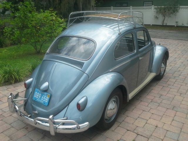 Thank you for looking at this low mileage, b>second owner, /b>1958 Volkswagen. Originally this car was purchased by a Virginia attorney to use as for commuting a short distance to work five days a week. Upon retiring the car was parked in his garage until he passed away. So, ith 55,800 original miles on the car it sat, ucked away in the garage for almost 40 years. The original floorpans are intact and in excellent condition. The original engine is tuned up and runs excellent. Sitting, ven in dry storage takes a toll on vehicles, o some restoration was necessary to make things like new again. This includes Glacier Blue lacquer paint (which was original car color and paint type), ew window rubber, ew window felt tracks, ew weather-stripping, ew correct "mouse hair"headliner, ew upholstery, ew carpet, nd new runningboards with new rubber, ew chrome bumpers, nd new tires. Brakes and tune-up were done by a retired Volkswagen mechanic. New European oak strips were used to restore the original VW marked roof rack. As pointed out by a friend who is more of a VW enthusiast then we are, he original 4 tab hood and the original snow flake taillights are still in good shape. Restoration was completed a few years ago but there have only been seven miles put on it, b>mileage now 55,807. It is stored inside. Cranked and moved regularly. . Grandson wants it but the car would sit for 8+ more years. Time for someone to enjoy it Original paperwork including original owners manual (missing cover) and original service booklet. If I've forgotten anything that you would like to know, uestions are welcomed. |