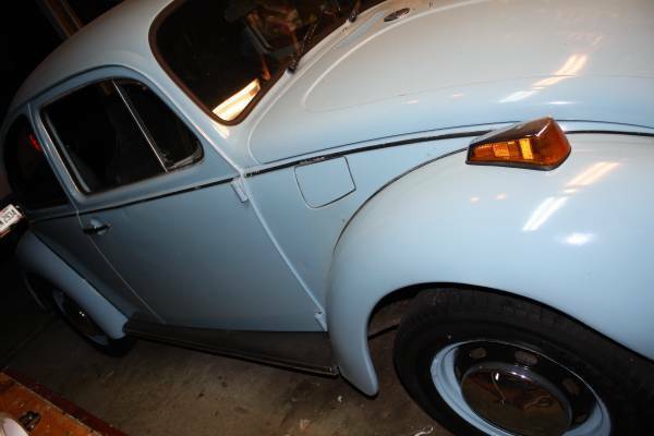GOOD: New (rebuilt original) German Carburetor (rebuilt by Volkzbitz) All new fuel lines New fuel filters New brake lines New cd player New throttle cable New gas/brake pedal assembly New battery New timing belt New spark plugs New spark plug wires New window regulators -(one of these has not yet been installed but will be included with the car). BAD: No carpet-But floors have been painted (no rust). No heat - Can the heat be fixed? Sure! But honestly, f you are worried about having good heat you probably shouldn't be looking at volkswagens... *VW parts are easily accessible, nexpensive and Beetles are the easiest cars for DIY projects. Engine has been tested at a shop for compression and everything checked out good. We have the paperwork from that test as well as all the receipts for new parts that have been installed. All the lights/turn signals work as they should, he headliner is intact, he backseat has been removed for cargo space but I do still have it. Other than the two passenger windows, ll of the other windows have great/newer seals and all the glass is original. Carpet has been removed but floorboards have been painted and look good. The car is 43 years old, o yes it has rust, but nothing that effects the structural integrity. The floorboards are solid and there is no visible rust on the outside of the car. The paint is original but it has been touched up in numerous places both inside and out. Gets lots of attention everywhere we go. This car looks great until you are up close and start looking for flaws. This car is driven and used as a commuter. Shipping is responsibility of the buyer. I may be able to help move the car, ust let me know where you are located and we can figure something out for transportation.--Please ask any and all questions before bidding. I will also consider trades. Thanks! |