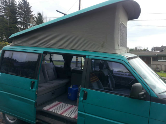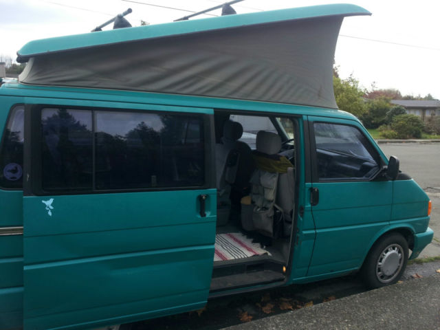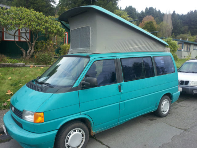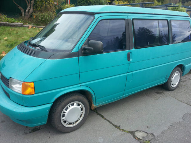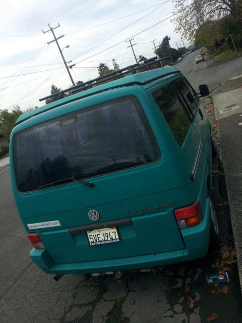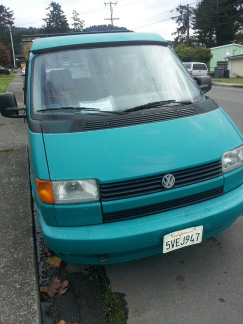 Over $1000 below blue book. 93 Eurovan MV weekender edition. 5 cylinder Audi 179486 miles. Van is Teal in color and is in great condition. Little rust or salt damage. Michelin tires, ew shocks, all joints, ie rods, oolant manifold, an switch. Sliding door is dented but painted and functions normally. Yakima roof rack and camping accessories included.Michelin Agilis tires weight rated and are all at >%80.Tow hitch, ooler box that works well and folding table inside. This van was in CO, outhern CA, nd now Bozeman MT. Pop up bed and folding back seat turns into a bed also. Cooler box and rear interior lights run on aseparate battery so starting up aftercamping is not a problem. This van is roadand winter tested and has had good care andpreventivemaintenance. Have records of major repairs. Non Smoking. Rear hatch door is sticky but opens always from the inside. Lock core on broken on passenger front door. Can lock from inside but not with key from out. CD player not working radio yes but needs new antenna. Pricing below Blue book for these issues.This van can keep up on the highway and is a sweet rig for road trips.