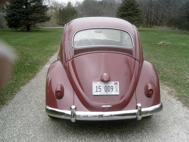1959 VW BUG FROM CARLSBAD CAL. DRY RUSTFREE DESERT CAR BEFORE RESTO, OTAL PAN OFF RESTO DONE IN ORIGINAL COLOR INCLUDING THE POWDER COATED PAN UNDER NEATH, K MILES SINCE, EW UPDATEWITH NEW 215 X 17" X 60TIRES REAR AND 185X15 X 60 FRONT TIRESWITH SALT FLAT WHEELS ANDKNOCK OFFS, ROPPED SPINDLES, LAMETHROWER IGNITION ETC. THIS IS A WONDERFUL 1915CC ENGINE WITH DUAL CANDRON CARBS, NGLE CAM,AND BIG TUBE STAINLESS HEADERS /MUFFLER, UNS SUPERBLY AND VERY FAST, ULLS HARD GOES UP HILLS EFFORTLESLY AND RUNS COOL,HAVENT SEEN ONE RUN LIKE THIS, ATER FREEWAY FLYER TRANS WILL RUN 75 ALL DAY AND DOESNT HAVE THE ENGINE NOISE DUE TO TOTAL INSULATION THRUOUT THE INTERIOR. PRO CUSTOM INTERIOR WITH BATWING WHEEL AND RETRO RADIO LOOK WITH ALL THE GOODIES,4'' NARROW BEAM WITH DROPPED SPINDLES, AS SHOCKS ALL AROUND. NO BUCKS SPARED ON THIS LITTLE BUG, TS COOL! AND FUN TO DRIVE, GOOD INVESTMENT GAINING IN VALUE,DONT MISS OU, FLY IN AND DRIVE IT ANYWHERE OR I CAN SHIP IT FOR YOU....WILL STORE BUT MUST BE PAYED FOR, MIGHT END EARLY DUE TO OTHER ADS....INFO...JERRY 309-373-3649 GOD BLESS