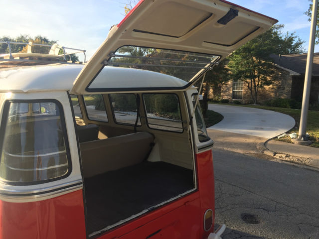 1974 split, 5 window bus no rus, just surface rust only new paint safari window in frontnew felt tracks in door windows.clear texas title.perfectinteriortune up on motor new seals no leaks .rebuilt carburetor and new air filter. drum brakes videos of bus onvintagebusimport.comseat belts thought outif you have any question(Except wHATS mY Reserve) call or text @214-502-6755 happy bidding....... On Oct-08-15 at 11:57:13 PDT, eller added the following information: 1974 vw bus split window 15 window low Reserve .....!!!!!! ovo/ >Exterior: safari window rubber good,new felt in window tracks 4 of 8 windows open as the should red and white color scheme bumpers are white Deluxe trim in black new (insert) >Engine: rebuilt 1500cc rebuilt carburetor,new coil and wir, new plug >Transmission: Flushe, lutch is good >Brakes: dru, good >Electrical: everything works as it should >Paper clean texas title in hand >Shipping: We can deal with customers from abroad, e will be more than happy to assist you the best way that we can to export. We deal with DIRECT EXPRESS INC, 03 W Artesia Blvd, os Angeles, 0220. They are a great company in Los Angeles with remarkable customer service. (310)324-2100 On Nov-07-15 at 11:33:29 PST, eller added the following information: