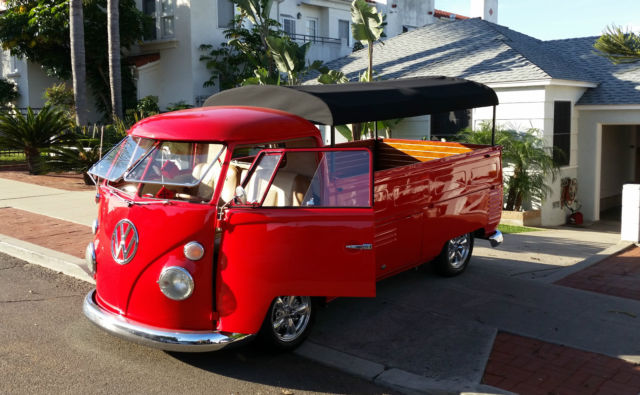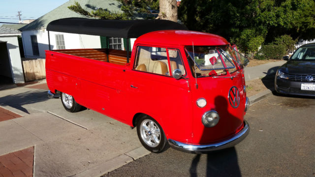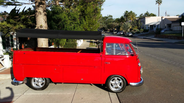 1962 VW Transporter, ull custom job, ew front end with disc breaks, reeway flyer transmission with new axles and drum breaks, ew 1914 cc engine with dual carbs, /div>Custom interior with leather seats and trims, ew Fire Engine Red paint in and out, ustom wheels and New tires, ustom Safari Top, afari windows front and back, ustom Teak and Holly bed liner and side panels. The cleanest VW Transporter ever. Shipping is up to buyer to ship, ncluding paying for transfer fees. |
