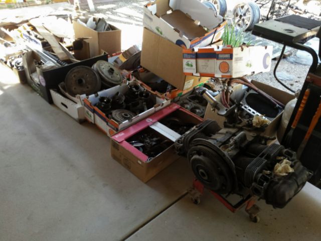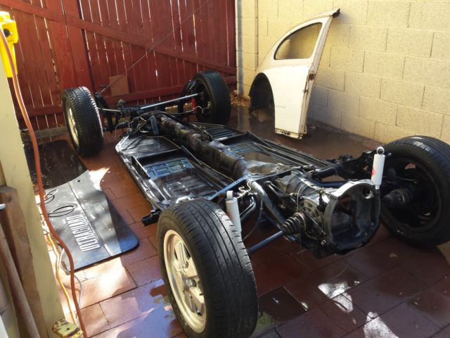 Project started several years ago by family member. We have almost $5500 in new parts, body work is largely done and chassis (pan) is complete with 5 lug wheels, narrowed in front, powder coated and newly rebuilt transaxle Details: Pan: - new front beam is narrowed (2.5 inches?) with adjusters in it to lower the car (narrowed beam brings thetire back underneath the crown of the fender to eliminate the tire rubbing on the fender edge when dropped) - front cross drilled disc breaks - line locks installed on front breaks (solenoid installed in the front break system to lock the pressure for burnouts) - caster shims in the front end (corrects caster of front end when it is lowered) - all new bushings - 2 3/8" aluminum hard fuel lines for a fuel injection system - new components for rear drums - new master cylinder - pan and all components powder coated gloss black - Porsche 5 bolts lug pattern with polished aluminum Porsche replica wheels 15x6 size - assembled by Competition Engineering Transmission: - full rebuild with 0 miles on it by Arizona Transaxle - new syncros and shifting forks - heavy duty super-beetle differential side cover (the super-beetle diff cover has extra webbing to eliminate flexing under high load, an OEM part for better fit vs some aftermarket stuff) - supper differential (4 spider gears) - stock 1st through 4th gear ratios with a 3.88 ring and pinion (freeway flier setup. the stock R&P is 4.12. a 3.88 would drop RPM in 4th by about 500 RPM) Body: - 69' body modified with 66' and earlier hood and front apron with earlier front bumper brackets welded in -66' and earlier OEM rear apron - 66' and earlier front OEM fenders straightened by a body shop - pop-out rear side windows - 63' sliding rag top graphed in by Deano's body shop We will pack in pod for shipment. All shipping paid by buyer |