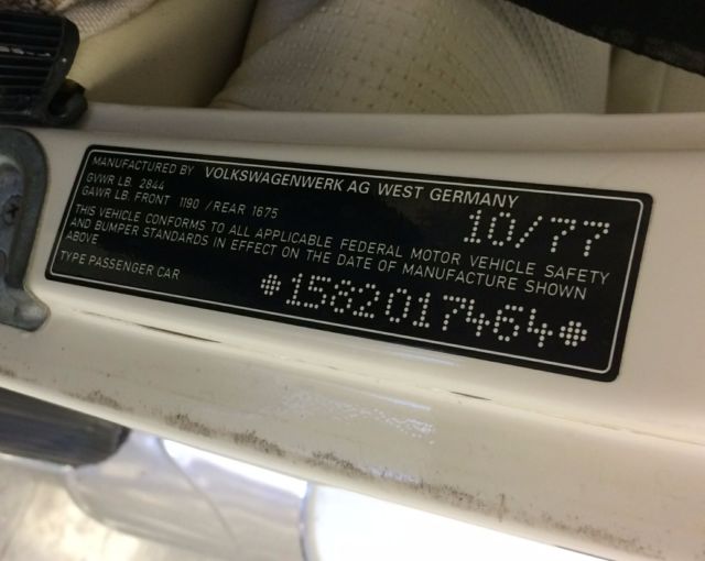 Up for sale is one of the rare Karmann Volkswagen Champagne Edition Beetle Convertibles. Each dealership was given one or two of these cars to sell in 1977 and 1978 (S723 Special US Sales Campaign). Restoration was finished in 2012. Bodywork and paint was performed by Earl Mann in Ardmore OK. All new body rubber, seat covers, trim, carpet, and mats were installed. Sewfine tan canvas convertible top installed and has matching boot when the top is stowed down. The dashboard is original and nearly perfect, with one small crack forming in the vinyl skin. The engine was upgraded to a new Strictly Foreign 1776cc motor with a weber progressive carburetor. This one does not drip oil like most older VW engines and has only 1000 miles on it. Transmission is a rebuilt stock manual 4-speed with 4000 miles. Top speed is 80mph. The front brakes have been converted to disc brakes (Karmann Ghia design) with German bearings. Wheels are vintage Western Cyclone rims. Car presents well and wins first or second place in its class in most VW car shows. There are three small cracks in the paint that are only noticeable upon close (within 1 ft) inspection. Sale will include the original fuel injection components along with a catalytic exhaust manifold. Check your local vehicle emission requirements. This car will not pass the modern emission treadmill test in its current carbureted configuration. Some localities will exempt emissions testing if it is registered and insured as a classic car. The interior is currently oatmeal loop carpet kick panels with black rubber floor mats, similar to the original factory design. Car will come with two matching oatmeal loop floor pieces if you want to replace the rubber mats will full carpet. No overseas purchases. If you have less than 10 feedback scores, please contact seller before buying. Read more about the Champagne Edition Beetles here:http://www.ebay.com/gds/Champagne-Beetle-Convertible-Identification-/10000000003621735/g.html |