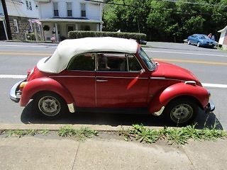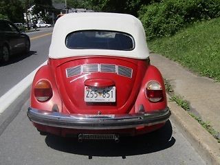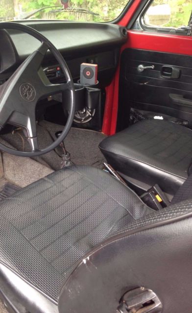 | Our daughter is heading off to college and we are faced with selling her first love, her first car, her 1975 red vw convertible. New carburetor, new driver side floor pan, new rear seat belts, new convertible top. Comes with replacement rear glass window in box. Has custom double drink holders that fit into ashtray, but also have original ashtray. Runs great - starts up every time! Located in Cumberland Maryland. |