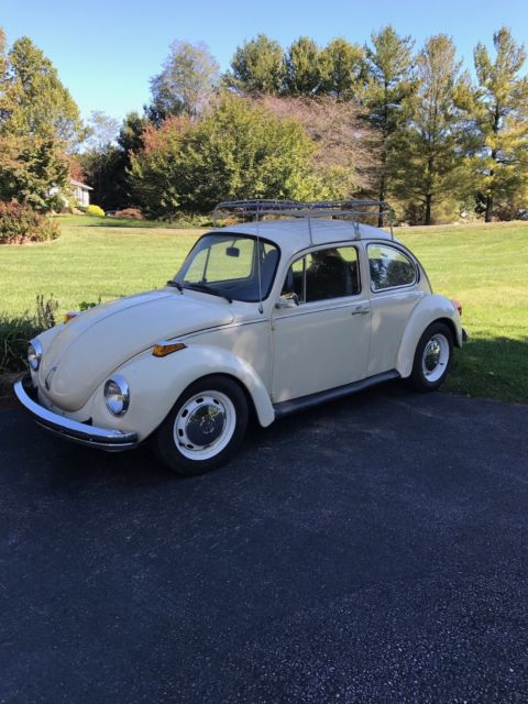 | Super Clean Super Beetle! Clear MD Title37173 Original Miles!Runs GreatShifts GreatTires GreatInterior in excellent shape New Door PanelsAM/FM/CD/MP3/Bluetooth Stereo with front kick panel speakersIncludes Roof Rack and Car CoverPop Out Wing WindowsSome small dings and spots but excellent shape overall - older resprayFloors are great condition especially under battery which is usually a problem area.Great value for a great old bug.Sold as is. Guaranteed to be in running/driving condition when picked up/delivered/received by shipper.Limited area delivery available for $2.25 per loaded mile - Must be prearrangedOtherwise pickup/delivery responsibility of buyer. |