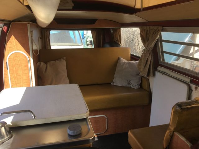 This is a very solid bus. One respray some time ago, otherwise very original. Fresh rebuilt engine, good brakes,tires, steering, and transmission. This camper is ready to hit the road on its next adventure. New canvas tent, original upper cot and front child's cot. New carpet through out very little rust anywhere. The floors are clean and rust free. Underneath is clean also with upgrade suspension and rear sway bar for better handling and safety. Lots of original parts!! Clean original California bus with original blue and gold plates and clear title.