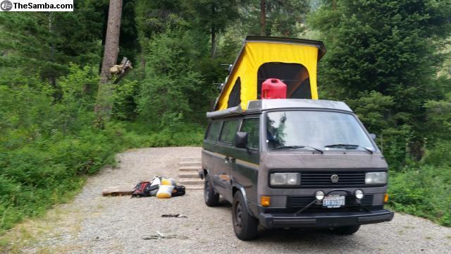 Full Westfalia Camper. Runs excellent. New Grabber AT2 Tires. New South African Grill and GoWesty LED Headlight Upgrade kit. New GoWesty Instrument Cluster PC Board with LED's. New LED exterior light kit. 2.1 liter motor runs strong. New fuel lines installed in the engine compartment. Interior is in excellent condition for a 30 year old vehicle. Rides real nice. Power windows. I purchased this vehicle a few months ago from California. It has had a respray from a previous fender bender. Most of the paint is in good shiny condition. There is a spot on the sliding door that has some cracks from filler. One small spot of seam rust is starting to form. Just returned from a weekend trip to Moab riding the trails and it ran perfect. Items that need work. Tent is the original with some small tears. AC needs a recharge. Fridge and campstove are untested but appear to have little use. Odometer does not work. Mileage shows 241k. Previous owner stated it had a recent rebuild but I have no record of this. Priced to sell, you won't be disappointed. Call with any questions. |