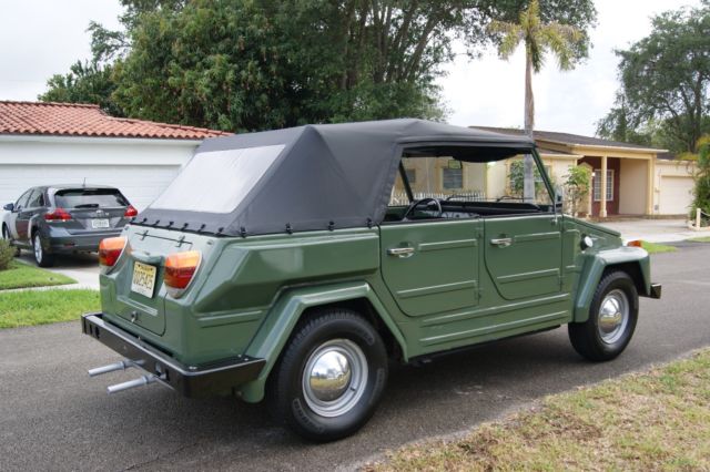 1974 VOLKSWAGEN THINGTYPE 181 ORIGINALNICE BEAUTIFUL CAR FOR ENJO, RUNS AND DRIVE VERY WELL STARTS IN THE FIRST TUR, VERY GOOD MECHANICAL CONDITIONS , OLD RESTORATION LOOKS AMAIZING WITH SOME IMPERFECTIONS AND TOUCH UPS SEE PICTURES AT PASSANGER SIDE LOWER SIDE REAR DOOR . VERY WELL TAKE CARE AND LOVE BY THE OWNER, NO OIL LEAKS 100% RELIABLE DRIVE ANY WHERE AND ENJOY IN THE BEACH OR MOUNTAI, ALL LIGHTS AND HORN ARE OPERABLE INCLUDED THE LITTLE MAP LIGHT ON PASSANGER SIDE. 5 BRAND NEW TIRE, BRAND NEW BATTERY AND BRAND NEW TOP PROFFECIONAL INSTALLED ORIGINAL JACK ITS PRESENT AND SPARE TIRE CLEAN AND CLEAR NEW JERSEY TITLE CAR IS IN FLORIDA SINCE 1997 GAS GAUGE NOT OPERABLE MAYBE NEEDSENDING UNIT COURTAINS ARE OLD BUT PRESENT (LAST PICTURE) SELLING THIS FOR A FRIEND THIS BEAUTIFULVW THINGITS A HEAD TURNER WHERE SHE GOES IS SOLD AS NON RESERVE AUCTION HIGHER BID WINNS (SERIOUS BIDDERS PLEASE) PLEASE HAVE ALL THE FUNDS PROPERLY ALIGNED BEFORE YOU BID $500 NON REFUNDABLE DEPOSIT VIA PAY PAL ( AFTER AUCTION FINISH) BALANCE WITH PERSONAL CHECK FOR ANY BANK IN FLORIDA ( 72 HS AFTER AUCTION FINISH) OR WIRE TRANSFER TO MY ACCOUNT 48 HS AFTER AUCTION FINISH PLEASE GIVE ME A CALL FOR ANY QUESTIONS CELL 305 733 9437 ADRIAN 10 DAYS FOR PICK UP AFTER AUCTION FINISH OR $ 25 A DAY IF STAY LONGER BUYER IS RESPONSABLE FOR SHIPPING COST (WE CAN HELP TO LOAD IN THE TRUCK) SOLD AS IS WHERE IS INSPECTIONS ARE WELCOME THANK YOU ! |