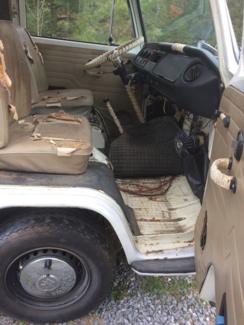 1972 VW Bus Rivera that is in great shape. Look at the pictures to see how great this body is for a Van that is 46 years old and the love that was put into it with the custom hemp(?) macramé. Even the door handles and parking brake lever were treated with this custom wrap. A one of kind. Everything you see in the pictures is included with this bus. Look at them carefully to see how great this bus is. The front seats are firm and the body is solid. It does have a few spots that will need to be touched up and I believe it will need a new battery tray on the drivers/passenger side. No broken glass and the motor turns freely by hand. I was wanting to restore this but I have so many projects right now that I need to let a few go or I will never finish any of them. I have tried to describe this bus as best I can and I am happy to send more pictures or answer any questions you may have. This bus is being sold "as is" and is available for inspection which I encourage. Buyer is responisble for shipping and arrangements. If there is anything else you would like to know, just ask. If paying by paypal, buyer pays fees. Aloha
