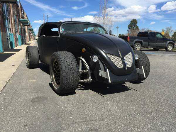1974 titled classic Rat Rod Convertible Custom bug. It has a 1600cc All rebuilt engine and VW Bus transmission - dual port dual carb. All Upgraded Disk brakes in the front air shocks in the rear. custom 4 speed - VW Bus Manual transmission! It has a added fuel pump and adjustable front end. Shaved doors with electric entry Remote pop opening doors. Top is in great shape no tears. Porsche seats and steering wheels. Has 2 x 12" subs hits very nice, and snowflake wheels. Come with 2 sets of tires good condition one thick - This car drives just as good as it looks. It has is a 3m satin black wrap on it and the inside was painted satin black to match. Head turner Very fun ride!! clean Colorado title - Colorado Collector Plates good unit 2020 - have more than $15k into the vehicle - 4 different vehicles 1969-1974 VW Bug - VW BUS - Porsche - Please Text for questions. 720-372-4606 Ready for Summer Fun chopped - custom - old school - classic - rare - Hot rod - dune buggy - exotic - rare - custom - |