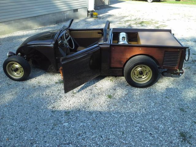 | 1965 CUSTOM volkswagon pick-up it has a 1910 vw engine with a 4 speed transmission the motor has a few goodies in it with duel exhaust has power tail gate it has custom wood on the outside of the bed and inside of the bed custom bmw metallic bronze paint job suicide doors has a roll bar through the interior of the car with custom interior stainless steel fuel tank the car has a extended front end on it with disks brakes with a select a drop front axel new tires all around this is a very custom vw if anymore information call me at 270-816-4775 the car is located in southeren Illinois the pictures tell it all |