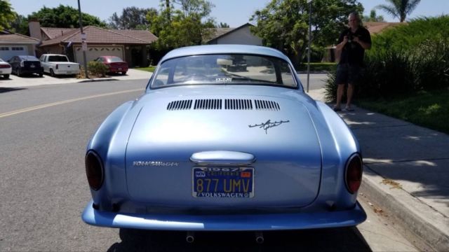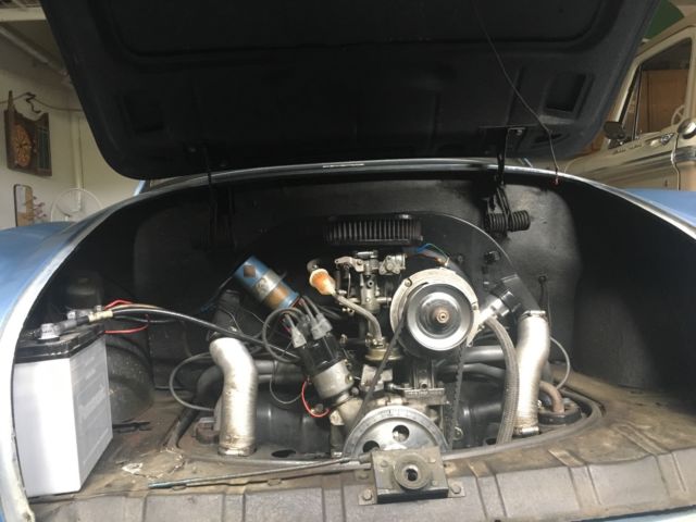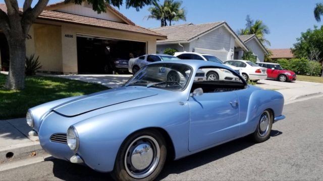 Clean Karmann Ghia. Runs very well. New transmission. New adjustable front end. Needs a little body work on the front right fender. No Rust anywhere. The pan is very clean. I bought it off a guy that kept it in his garage since 2002. It was started every month or so. I have been driving it all around town with no issues. I have the quarter windows, rubber and parts. I have the full carpet kit as well as headliner kit. I also have an extra front end as well as front bumper. My plans have changed due to work and family.