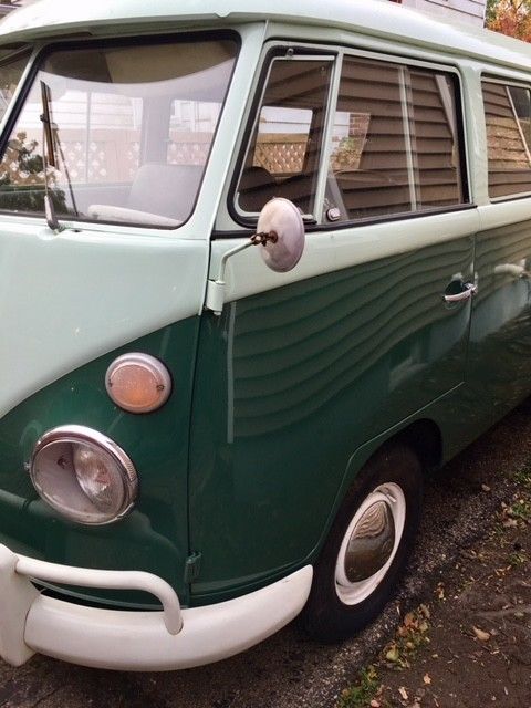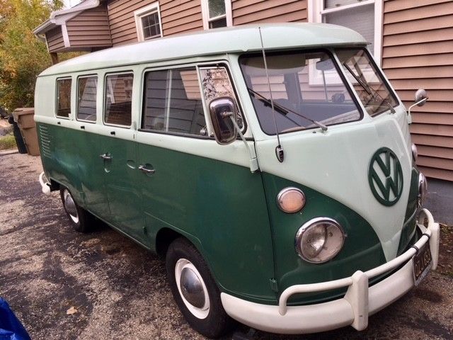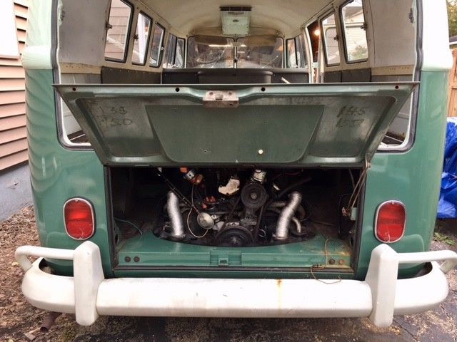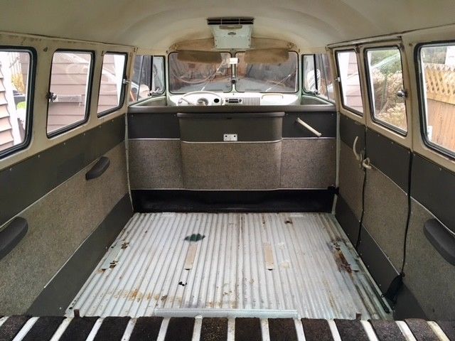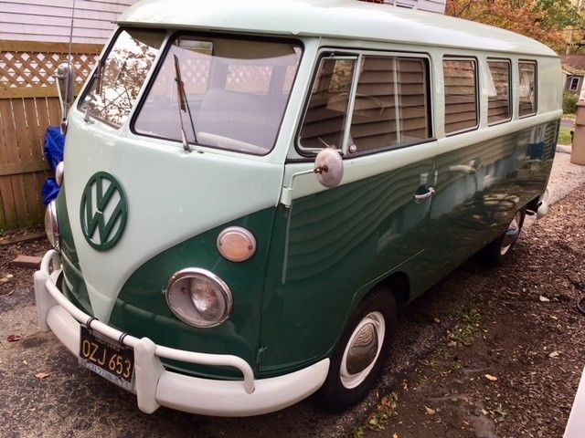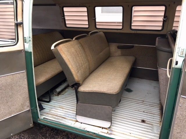 1965 VW Split window 8 passenger van2 owners, orig CA van (with original CA black plates, matching license plate frames and owners manual.Original 1500cc engine,Original grey mesh interior, including original rear and middle seats (basement stored). Front seats have been recovered. Needs front and rear floor mats.Has a very cool camper interior built by the original owner. Original owner was in the aircraft industry, and the interior has a bunch of cool engineering that lets it fold up, and fit snug around the original interior with out modifications. Similar layout to Westy interior with closet, folding bed, table, bench seat with underneath storage, and fridge/sink combo. Super cool! It had some mouse damage in main/fridge cabinet. Camper interior can all be included if buyer is interested, or I can keep it for another project. Likely both interiors will not fit in van together for shipping. Advertising it with the original interior included. Van brought to WI in 2000 from GA.One repaint in 2003 (original velvet green lower half, top painted a slight more blue/green than the original blue white.) original paint inside with a few touch ups. Outer rockers were replaced with repaint, driver quality (5 footer). Has a little rust not repaired in bottom of inner rockers. Has a small around of rust in bottom of battery tray (just in tray, not in intersection with corner). Rest of the van is original metal and super straight and clean. Looks great! Owner passed away several years ago and van sat in garage. Currently does not run and drive, but does not need much to get on the road.Looks like it had a battery issue, still 6v and likely needs starter and a little wiring work, Good time to convert to 12v if someone desired.Should pull engine/exhaust and housing and clean thoroughly, had some mice. Engine turns over easily and see now reason it shouldn't run well with a tune, etc.Should pull tank and flush replace/fuel system as needed.Brakes could probably use a flush/bleed but no obvious leaks I've seen, and they work. Very clean, original van that shows well, has good history and would be any easy project to take to the next level. Clear WI title. More pics available. Very reasonable reserve! Van is Madison, WI.$500 non refundable deposit at time of purchase.Buyer responsible for all shipping.I reserve the right to delete bidders with zero/negative feedback. |
