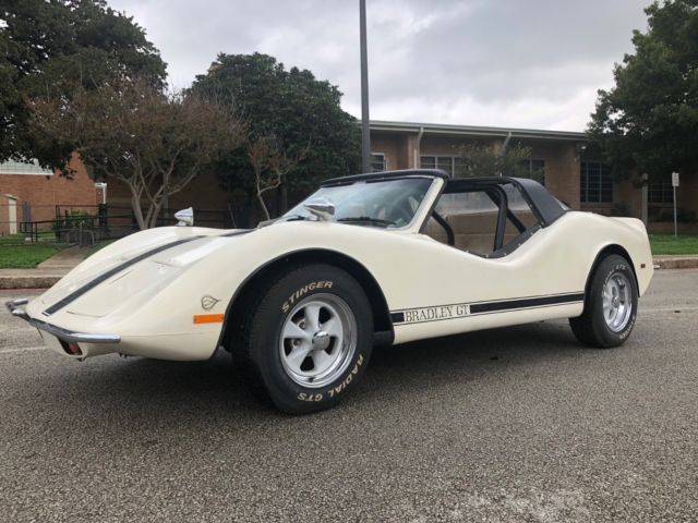 BRADLY GT SUPER 70'S VW KIT CAR 210-548-1310 Here is one super fun, super cool vintage Bradly GT Kit car from the 70’s. It is a original survivor car, not a rebuild. It was owned until recently by a retired AIr Force Colonel. The car was all ways garaged kept and upgraded to four-wheel disc brakes and the engine is totally rebuilt with less than 50 miles on the car. The body is in great shape with original stripes and graphics. Everything works! All the gauges including the tach, all the lights, wipers, horn and turn signals. The clutch is brand new, brakes are great and trans axle shifts as it should. The engine is a freshly rebuilt 1600 dual port that was just installed by a professional VW mechanic and properly broken in. (Will need another oil change in 500 miles.) The car has great looking wheels and tires and is a TON of fun to drive. Comes with T-Top removable roof doors and original center console, (not shown). The original VW floor pans are in great shape too. Please call with any questions. The car is located in San Antonio Texas and comes with a clear Texas Title. Call Hawk at 210-548-1310 |