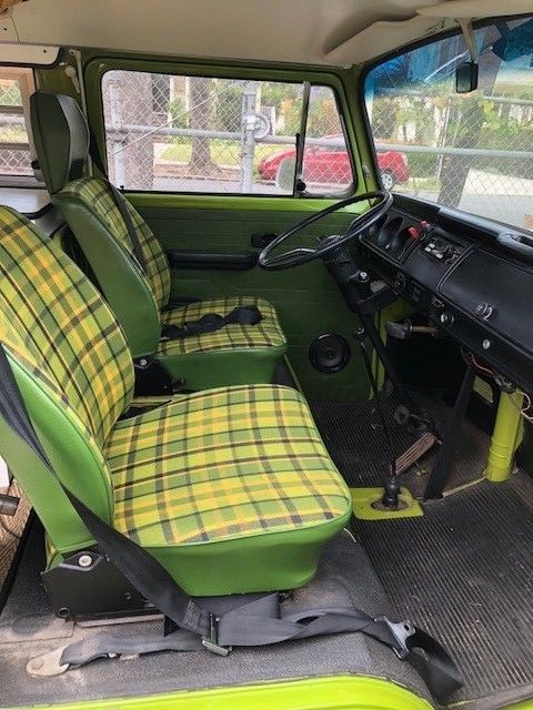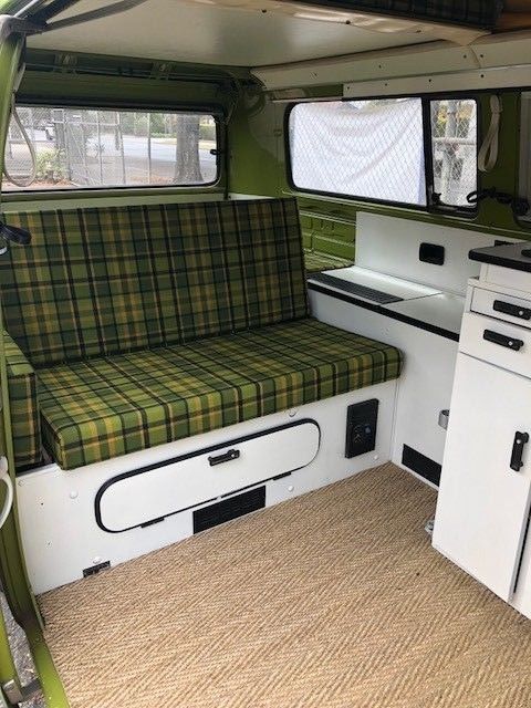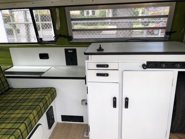 Meet Fiona! This green machine is part beast, part princess. She’s ready to tackle the road while making sure you’re comfortable and accommodated at the same time. Fiona is a 1977 bay window Westfalia that comes equipped to sleep 4, cabinets for storage, a sink and stove. New exterior paint and new interior with ORIGINAL Westfalia plaid seats, bench and upper bed. She is fuel injected and has been all around California with ease. Interior cabinets, side walls and ceilings all repainted. New tires, new alternator, new ignition switch, new hoses, lights and signals all work, new catalyic converter and gas gauge works! Sliding door rollers replaced, sightly paint damage by door from the replacement. Small tear in tent, could easily be patched or replaced with a window. Please message with any additional questions and REASONABLE offers. We are not in a hurry to sell her. NOTE** She is bright green...some of the filters were dark in the photos making her look a darker green color. |