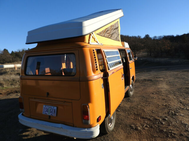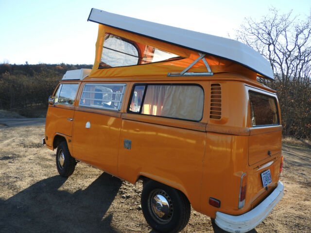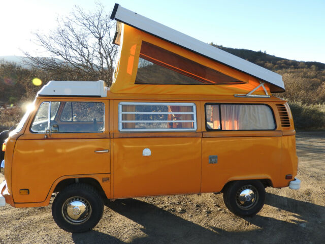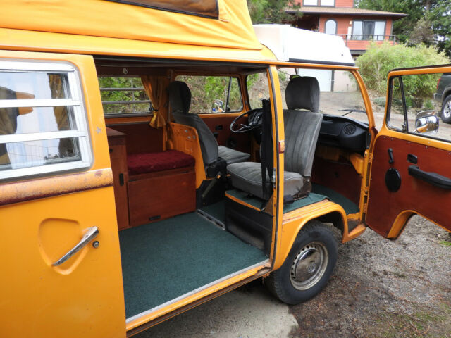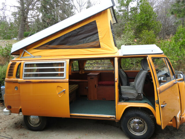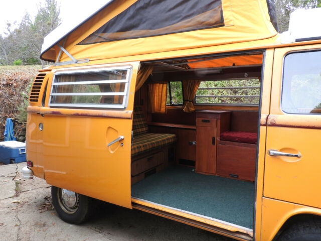 77 VW Westfalia Bus original paint, true survivor! Patina Queen. RARE Great Original Condition, very well cared for. Too pretty to refinish (yet). Turning 42, looking for a 4th owner. This Bus appears in a Fox Searchlight Film, WILD starring Reese Witherspoon as part of the background scene depicting the day Cheryl Strayed hiked through Ashland OR on the day Jerry Garcia died, and there was a gathering of hippies to mourn and celebrate. She shines in her role, keep an eye out for her. I became the proud 3rd owner in 1997 when I spotted this bus for sale at a neighbor's house. It was perfect in every critical way, no rust, all original everything, no accidents and no "modificationsâ€. The original engine was up to 189k so I switched the original engine with a masterfully built much stronger 2000cc air cooled all German Mahle parts engine with all the bells and whistles (20 years of receipts). I had a better than new stock engine built and installed in 97, and all other cables, brakes, seals, shocks, clutch, CV joints, tires, hoses, electronic ignition, wires, relays, battery, etc.... to bring it back to better than new condition. I paid careful attention to regular maintenance and supervision to keep it in great condition. When I replaced the engine in I also had the gas tank cleaned and repainted (inside and out), installed a new Gas Level Meter (still works great!), replaced all the engine mounts, the clutch and plate, a number of electronic sensors/relays, fuel injection parts, gas and electric lines just to be sure that it was perfect in the hard to reach places. It currently has 4 full tread "C" (or truck) rated tires, the best for a Bus, giving it lots of stability, traction and handling. There is a nice spare tire and a mount on the front, above the bumper. I also had KYB Gas adjust shocks installed all around so the bus rights itself on the corners and handles great on bumpy roads. A must! This Bus deserved the best in engine restoration to match it's original beauty so I had Master Mechanic Tony Bonsell of (Euro-Mec Ashland, OR) build me an all high precision/performance German Manufactured Mahle pistons, heads, cranks & cams, 2000 cc engine, electronic ignition, hydraulic lifters, all top of the line. Tony is known for decades locally as a VW air cooled master (former air cooled Porsche race car builder (same engine as this bus) & perfectionist) and this bus was a reliable daily commuter for 10 years then a reliable occasional weekend warrior for the last 10 years (because it's too pretty to drive to work every day imho). It has been consistent, smooth and very powerful it's whole life. Starts right up every time and sounds like a well tuned sewing machine in idle. I have 20 years of receipts of high quality parts, work and maintenance with Tony. The engine is still so strong at 86k miles that it still cruses the freeway at 75mph easily and climbs steep Oregon Mountains at 55mph. It was tuned up recently and got another set of wires, battery and starter after sitting quietly for a few years, starts and runs quite smooth and easy. I replaced the engine when the odometer read 89k miles, and it currently reads 75k miles so the engine has run a flawless 86k miles. Current photos show All Original Paint and no body work done to it, it has a few minor dings, no real rust issues (little rock chip marks in the usual spots, barely rusted) as it's been in a mostly dry / no salt climate for 40 years, in covered parking at least half its life in northern California and southern Oregon. This Bus is very pretty and turns heads every time it's out of storage. People cheer when you pass them on the freeway! No deep corrosion anywhere inside, outside, underside. The red stripe w/gold accent was done at the dealership in 1977, and though mostly faded, gives it character and history. The front seats were redone in a grey fabric before I got it, and they are still comfortable and blend in nicely. I think the original fabric is underneath (not sure, not willing to cut into them, as they are still free of holes or tears), but they are still padded and well done so I never changed them. It has seatbelts and beds for 4. I refinished all of the cabinets to real wood with a nice cherry stain finish; no more VW plastic wood grain. This is a rare Westphalia Weekend Edition so It has a built in cooler (not fridge, but works great) and no stove or propane (a Coleman works great). I reconfigured the main cabinet to an additional bench seat so the "living room" seats 4, with the swivel passenger chair. Now all 4 passengers have a place to sit & sleep, so nice on a cold or rainy day! I replaced all the interior plastic doors, walls, and ceiling panels with real wood mahogany cabinet grade panels, which both warms the look and feel and complements the original "mango" colored paint. The "living room" has a warm and cozy feeling even on a rainy day and the real wood surfaces dampen the road noise and warm up the stereo sound. I installed space age thin but effective insulation in every available wall, floor and ceiling spot keeping it quieter and warmer/cooler all year. The heater works great but you will need to find one small replacement hose & tube to get the full power from the fan to both heater boxes. I drove it comfortably in 30 degree winter conditions for years and the windows even defrosted. All the bed cushions are in great shape and ready to sleep on. Full size bed "upstairs and downstairsâ€. Upper bed foldable for max headroom. The original canvas needed to be replaced so I just replaced it with a brand new top of the line German canvas 3 window with the original color! New pop top Seals all the way around. Better than ever! The pop top mechanism and bed work perfect and the bed fabric is still like new. It has a full set of original curtains that work great for total privacy and sleeping in late while camping. Including the full front window snap on curtain. It also comes with a screen that sn