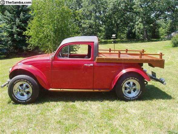 | 1961 CUSTOM Bug with beautiful western red cedar constructedpickup bed with rumble seat! Has speakers up front& in back .Draws unbelievable attention.! Black vinyl top and Western Red Cedar running boards!Engine has less than 200 miles since rebuilt 1385 cc.Done by perfectionist vw expert with 51 hrs experience!No floor / chassis rust! No e-brake but can be added by my mechanic if wanted ! One Of A Kind!Selling all my vehicles because of visual problems! Have 2006 Toyota tundra 4x4 also. |