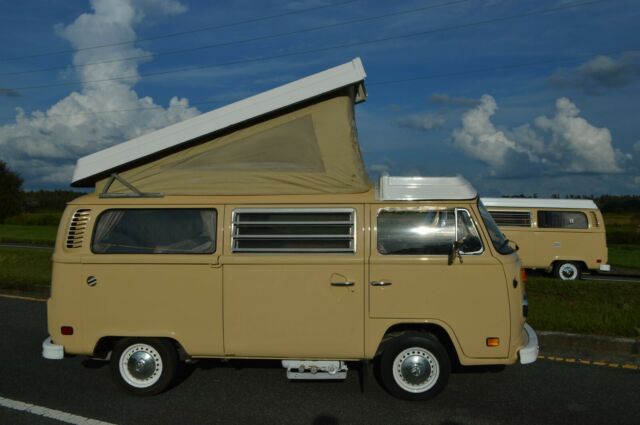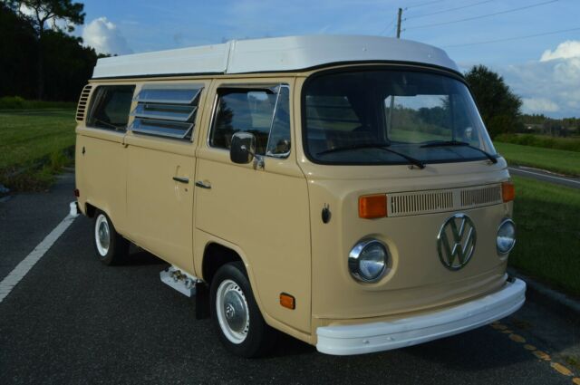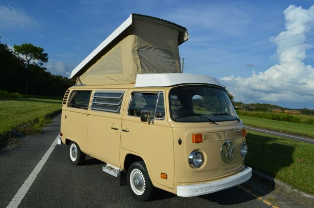1978 VW BUS TYPE 2 WESTFALIA CAMPMOBILE IN ITS ORIGINAL DAKOTA BIEGE COLORJUST PAINTED AND RESTORED TO BE A SHOW VAN OR DAILY DRIVERDAKOTA BEIGE EXTERIOR PAINT JUST FINISHED IN SEPTEMBER OF THIS YEARWITH ORIGINAL CHECKERED BROWN/GREEN/TAN INTERIOR SEATS ALL LOOK GREATSLEEPS 4 HAS PROPANE COOKTOP AND SINK PLUS ICE BOXPASSENGER SWIVEL SEAT WORKS PROPERLY2.0 LITER ENGINE RUNS GREAT AND STARTS RIGHT UP EVERY TIMENEW BRAKES JUST DONE 100 MILES AGO WITH RECEIPTSSINGLE CARB SETUP SO EASY TO KEEP TUNED UPWAS ORDERED WITH FACTORY A/C SO MOST OF THE A/C STUFF IS THERE BUT WILL NEED SOME WORK TO GET IT WORKING AGAINSHIFTS GREAT STRONG FACTORY AUTOMATIC TRANSMISSIONALL TRIM IS IN GOOD CONDITIONSOLID FLOORS AND WAS PAINTED FOR BUG JAM THIS YEAR A LOCAL VW CAR SHOWALL CURTAINS AND SEAT CUSHIONS ETC ALL INCLUDEDVAN IS COMPLETE AND HAS A CLEAN AND CLEAR FLORIDA TITLE IN HANDTHE REAR CAMPING SCREEN IS INCLUDEDALL KEYS AND EVEN HAVE THE ORIGINAL MANUALHAS A TON OF POWER AND GETS GOOD FUEL MILEAGEREADY TO GO TO THE VW SHOWS OR CAMPING NOW CALL WITH ANY QUESTIONS PRIOR TO BIDDING (813)679-9609