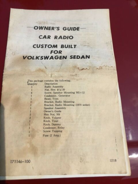 THTHIS IS A TEXAS CLEAN RUST FREE CLASSIC BUG! CURRENTLY OWNED AND LOCATED IN CENTRAL FLORIDA FOR SALE IS MY ORIGINAL CLEAN 1967 VW BUG... ONE RECENT RE-SPRAY AND NEW HEADLINER OTHER THAN THAT ORIGINAL INCLUDING THE FACTORY ORIGINAL SAPHIRE V RADIO REPAIRED BY ROBERT PACINI, PERCISION STEREO, NEW HARTFORD NY THE EXTERIOR / INTERIOR PAINT IS FACTORY VOLKSWAGEN RED. WINDOW RUBBER EXCELLENT, TIRES GOOD, NEW BATTERY 4/23/19 DEMON MOTORSPORTS OF CRYSTAL RIVER, FLORIDA PERFORMED THE FOLLOWING MAINTENANCE SERVICES: 4/23/19 ·ADDED FIRE SUPPRESSION SYSTEM TO ENGINE COMPARTMENT ·ADJUSTED VALVES ·NEW DISTRIBUTOR/ROTOR/ AND FELT PAD ·TRANSMISSION OIL/ ENGINE OIL CHANGE ·NEW AIR FILTER ·SET IGNITION TIMING ·NEW CARB ·GREASE TORSION BARS ·STEERING ALIGNMENT CHECKS ·BRAKE CHECKS ·NEW VALVE COVER GASKET ·NEW PLUGS AND NEW WIRES ·ALL NEW COPPER WASHERS/ GASKETS / PAPER WHERE APPLICABEL ·NEW DRAIN PLUG ·ALL ELECTRICAL IS FUNCTIONAL ALL LIGHTING IS OPERATIONAL ·HAVE ALL MAINTENANCE DOCUMENTATION OF WORK I HAVE DONE ON THIS CAR - INTERIOR SHELF INSTALLED UNDER DASH ADDITIONAL ENGINE WORK PERFORMED BY AIR COOLED HOUSE OF LONGWOOD, FL - BRASS VALVE GUIDES X 8 - INTAKE & EXHAUST VALVES X 8 - GASKET KIT - 85.5 PISTON RINGS - OEM ROCKER ARMS ALL WEATHER FRONT FLOOR MATS - JBUGS OCEANSIDE, CALIFORNIA BOTH DOOR LOCK MECHANISMS HAVE BEEN THOROUGHLY CLEANED & LUBED REPLACED THE '12 VOLT' DECAL AT DRIVERS SIDE DOOR PILLAR REPLACED FUSE BLOCK & ALL FUSES & CORRECT YEAR VERSION OF THE FUSE COVER (SPARE FUSES IN GLOVE BOX) ORIGINAL VW GLASS ALL AROUND EXCEPT FRONT WINDOW INTERIOR SPELLS PATINA, THIS IS VERY ORIGINAL INSIDE AND OUT .... HAS NOT BEEN ALTERED IN ANY WAY ******************. **************** A BRAND NEW COVER (EVEN THOUGH IT WASGARAGEKEPT) I WILL THROW IN MY REPAIR MANUALS AS WELL |