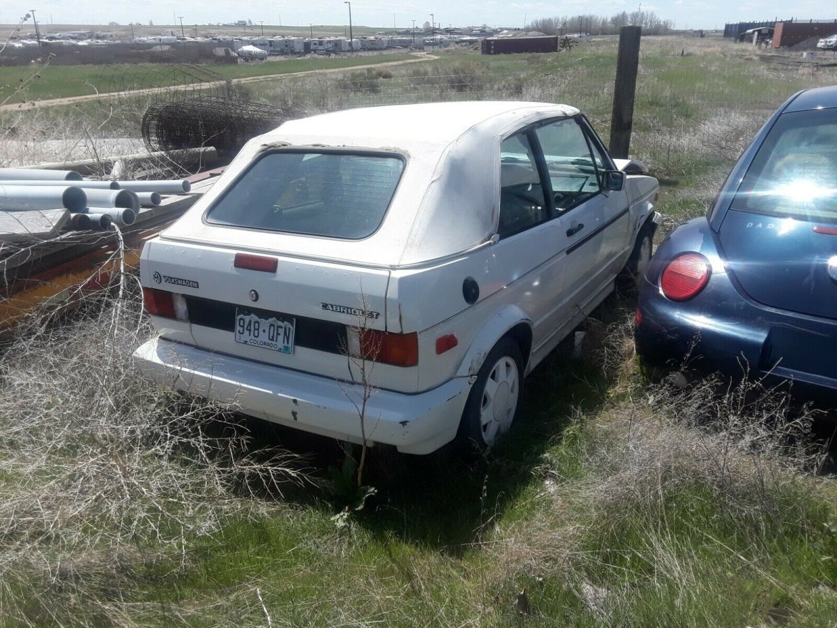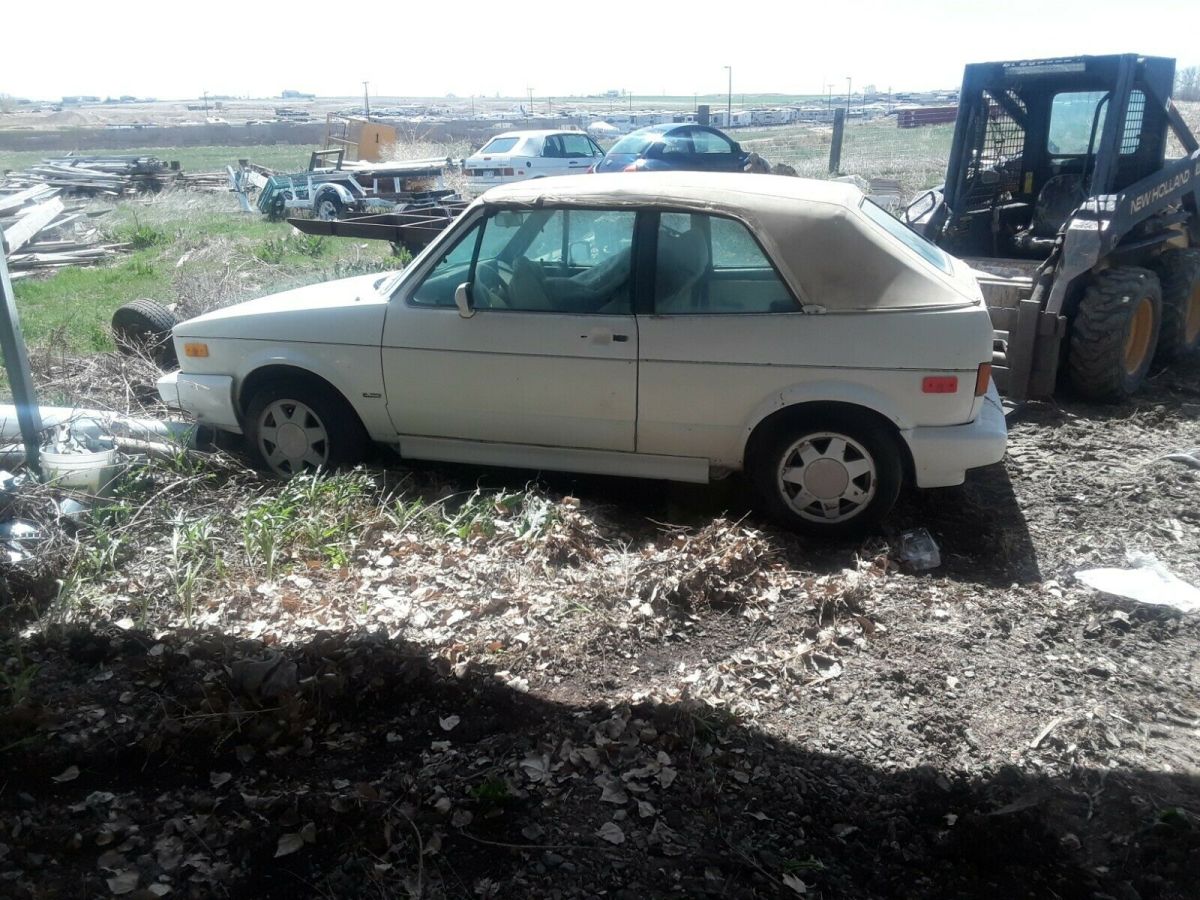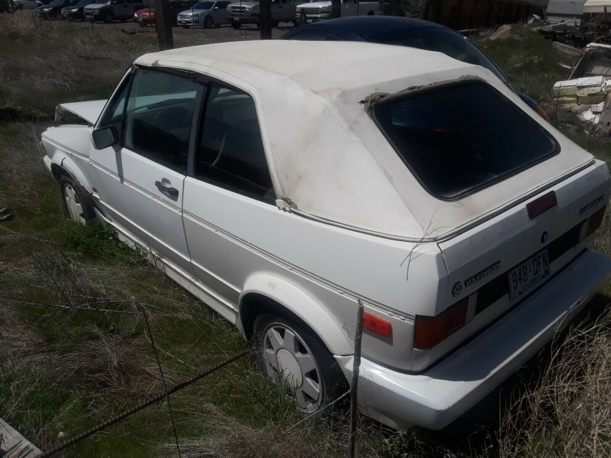 | 2 for 1 1990 Volkswagen Cabriolets, 1 is damaged in front. Both engines good. 5 speed, 4 speed and automatic trans included, all wheels and tires good. 1 set of brand new tires included. Awesome package deal. Both need tops. If ypou know what you are looking at come and steal from me, don't have the time. 2 great interiors, all the same parts. Damaged front end has the automatic in it. Nothing on drivetrain is disassembled. Ask any questions you have. |