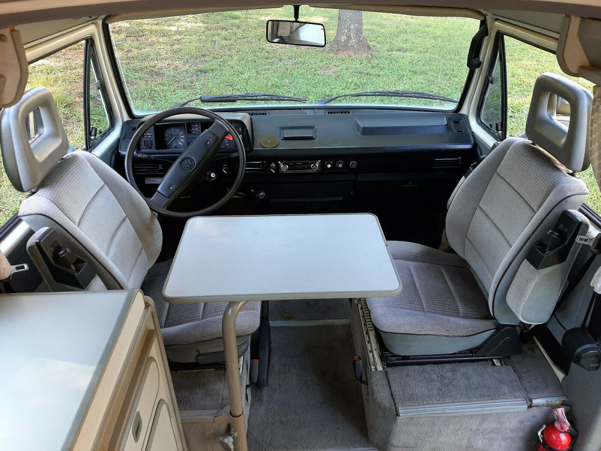 This is a 1988 Vanagon Westfalia full camper. These versatile campers continue to appreciate in value over time as no one has yet duplicated both the utility and charm of a Volkswagen camper. Let me start out by saying this Bus is very very original, well maintained, and clean. It was never used to follow the Grateful Dead or Phish by a group of 19 year olds. Not that there is anything wrong with that! It has been adult owned and babied it's whole life. Let's look at the details.... Mechanically, this Vanagon starts and runs very well. 210k miles is about average for the age of the van. We have a large stack of receipts from over the years. The engine was rebuilt a while back and lots of recent maintenance done. This Bus has the desired 4 speed manual transmission (yes, that extra gear in the manual transmission comes in handly while crossing mountain passes) It has the desired manual roll down windows (nothing extra to break!) The tires are close to new and have the recommended strong sidewall for the extra weight of the camper. This Vanagon needs nothing to get in and go. The Vanagon has the original paint in good condition. It is so rust free and dry, it looks like it was garaged all of its life. If you know Vanagons, then one always looks at the body seams for rust, especially along the drivers side. This has absolutely NONE. All the original camp stickers along the drivers side attest to the fact that it has never had rust or been repainted. The undercarriage and the fender wells are also in excellent rust free condition. There are two small dents in the Vanagon. One small scrape on the very back of the drivers side and one fist size dent in the quarter panel on the passenger side. Neither really detracts overall but would not be expensive to fix if you wish. The interior is in incredibly clean unblemished condition. It sounds weird but this Vanagon smells good! Lots of vans that have been used for home, travel, and play tend to get a little stinky....but not this one. Look closely at the front seats, especially the drivers side bolster. These are almost always broken down a bit from getting in and out of the Van. But NOT on this Vanagon. The adjustable arm rests work well and the seats swivel around to face the side and back. The rear seat looks equally as good as does the upstairs bed. The upstairs canvas is in good shape except for a tear in the very back. This could be easily patched with an adhesive patch. The front screen is good with no holes found. The camping gear looks to be in good condition. We have not tested the sink/stove/fridge but all look to be in excellent condition. This Vanagon came with factory AC but the compressor had been removed when we got it. Although these vehicles were never known for having the best AC, even when new, the AC system is still intact and could be made to work again if desired. Or you could just roll down the windows! If you are looking for an original Vanagon Westfalia camper, you would have a hard time doing better than this one. Roof racks are also included so you can throw your surfboard or kayak on the roof. Please look closely at the following picture link and watch the driving video.https://beautifulsurf.smugmug.com/1988-Vanagon-Westfalia/Please ask any questions and I'll respond asap. I'll also consider buy it now offers so please reach out if you wish to do so. Thanks again for checking out our Vanagon Westfalia. |