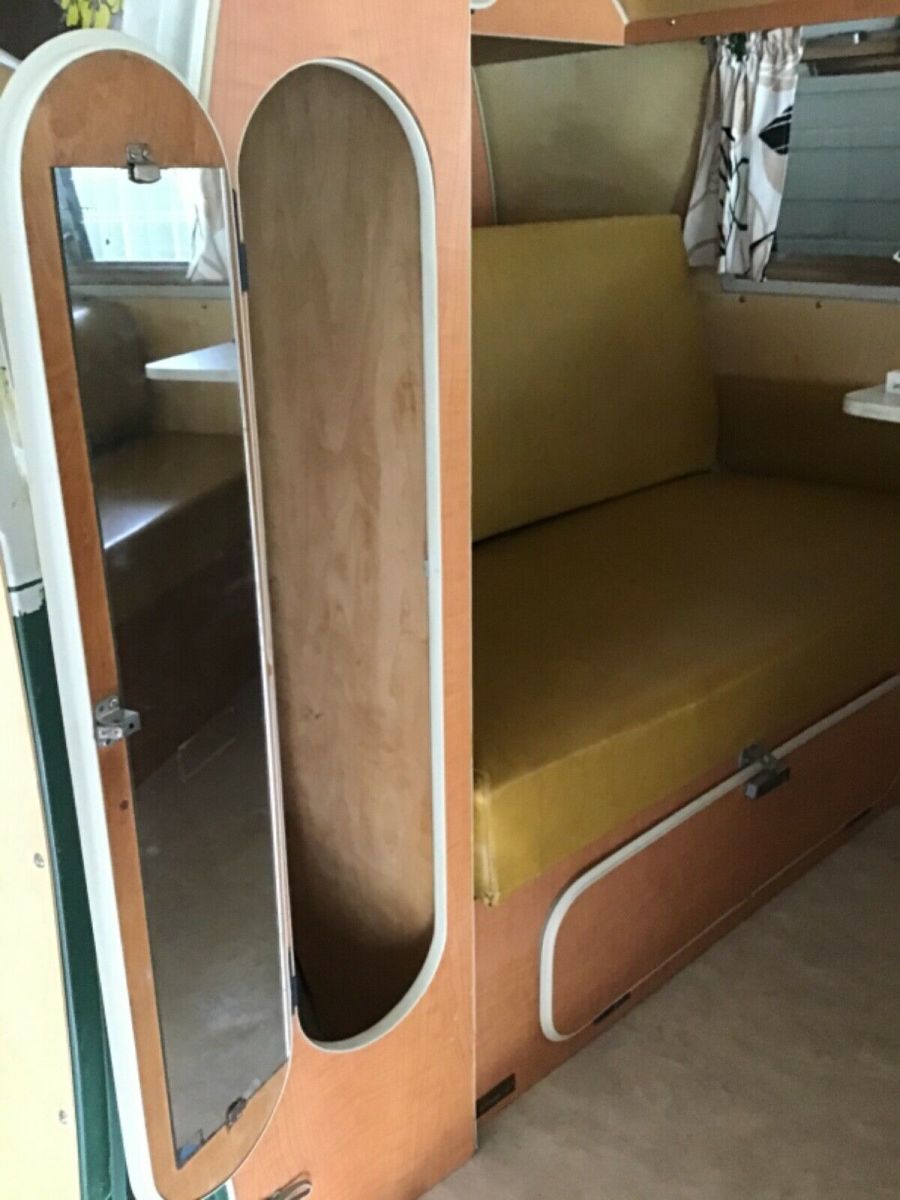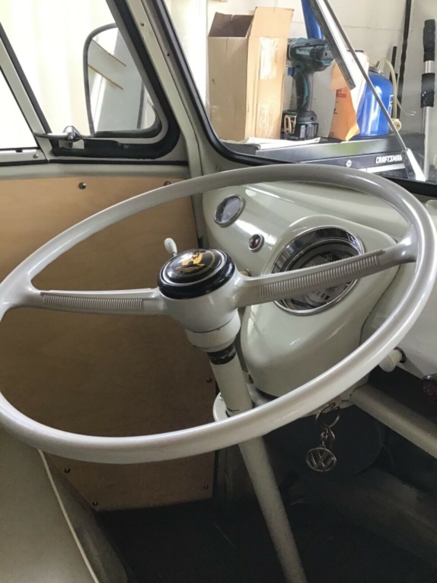 This vehicle was purchased from a gentleman in California who had bought it with the intention of restoring the vehicle but marriage and children got in the way,,,,,,he purchased it from a guy in Vermont 6 years before. I purchased the vehicle 9 years ago with the intention of doing a full rotisserie restoration in 6 months.....the 6 months turned into 5 years. Everything that could be restored was kept, any rust was replaced with new green panels. The beam was rebuilt by a renowned vw guy, and the engine and gearbox was rebuilt also by a renowned vw mechanic. All suspension was replaced, shocks and all new rubbers seals ect.....The interior cabinetry is all original including the mustard seat cushions...clamshell wall lightin, new birch panels line the roof, long side panel and door panels aswell as the cab panels....all new wiring, brakes, powder coated bumpers and wheels set this beautiful van off with new bright chrome hub caps, and new whitewall tires.....The curtains were replaced with something a little more modern but I do have the originals which will be included in the sale.....The original fridge is in place and in good order,,,,the type that you place a block of ice in it to keep your food fresh for the duration of your stay. Starts on the button and drives like a new vehicle. Over $20,000 invested into this vehicle, I will also pay $2000 towards shipping the vehicle anywhere in the world to the highest bidder.