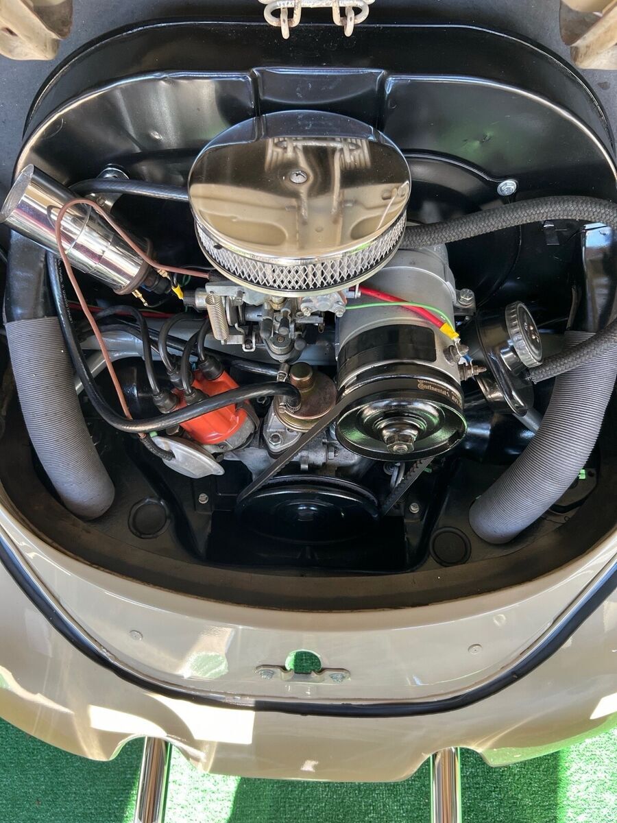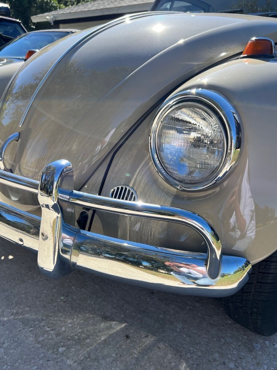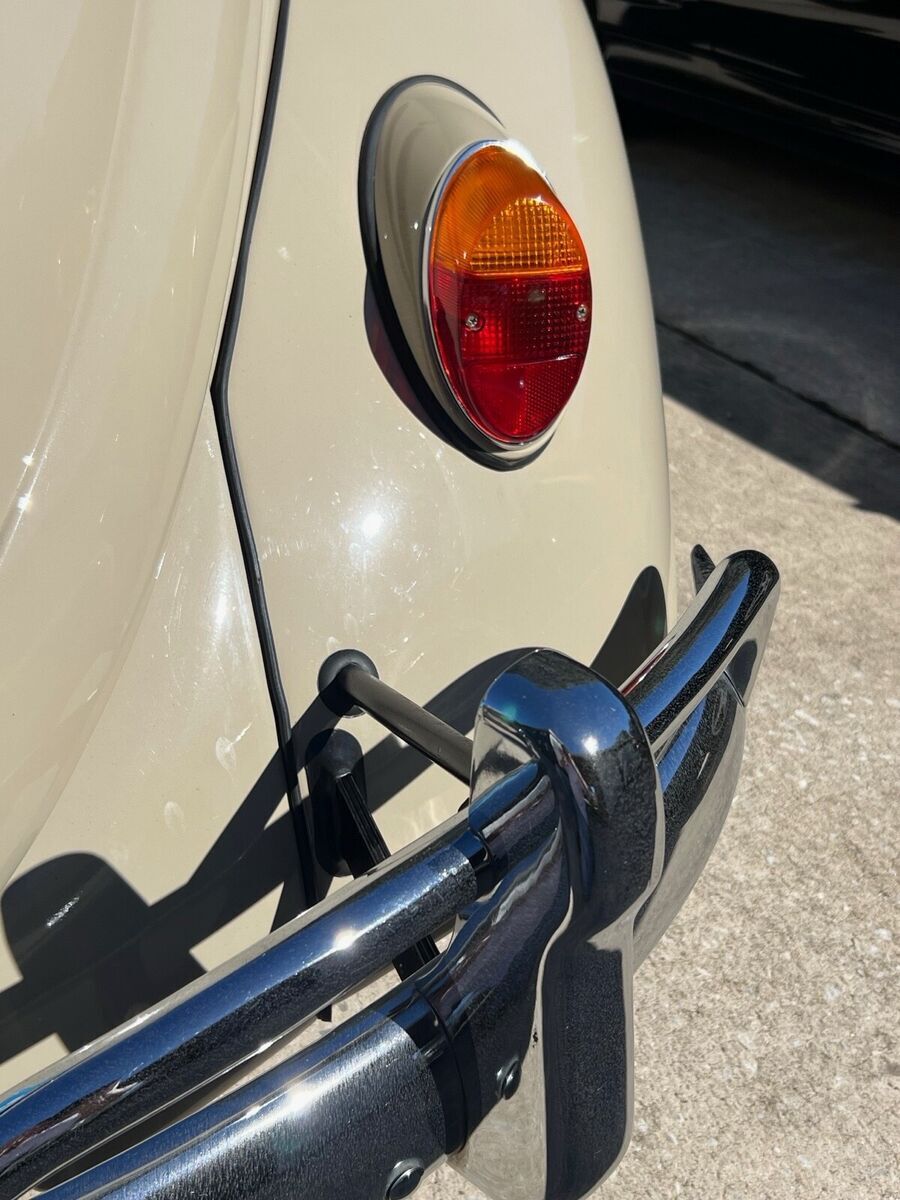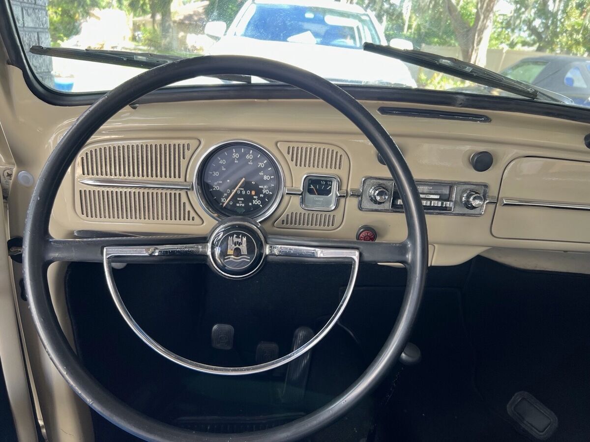 The refurbishment included: the body was stripped, rust repairs were performed, the window seals were replaced, and the car was repainted in beige, according to the seller. Details include polished beltline trim, a left-side mirror, pop-out rear quarter windows, dual “pea shooter” exhaust outlets, and chrome bumpers with overriders. The seller notes the windshield washer fluid sprayer does not work and rust is evident on the bumpers and inside the trunk compartment. Body-color 15″ steel wheels wear polished hubcaps and are mounted with 165-series Nexen SB-802 tires that are in need of replacement. The seller notes that the wheel cylinders and shoes were replaced. The front bucket seats and rear bench are upholstered in black vinyl and are joined by a replacement headliner, carpets, and door seals. A cabin heater, a passenger grab handle, and door map pockets are further elements. The seller notes that the driver’s lower door hinge sags, the driver’s seat cushion is torn, and the radio speakers are missing. The two-spoke steering wheel features a chrome horn ring and a Wolfsburg crest center cap and frames a replacement 100-mph VDO speedometer and fuel level gauge. The five-digit odometer shows 690 miles, which is said to represent the mileage accumulated since the completion of the build. True chassis mileage is unknown. The air-cooled 1.5L flat-four features a single Solex downdraft carburetor and is said to have been overhauled as part of the refurbishment. Power is sent to the rear wheels through a four-speed manual transaxle. The fuel tank and sending unit were replaced, and rust is evident on the underside. Vehicle Details 1967 VW Beetle |