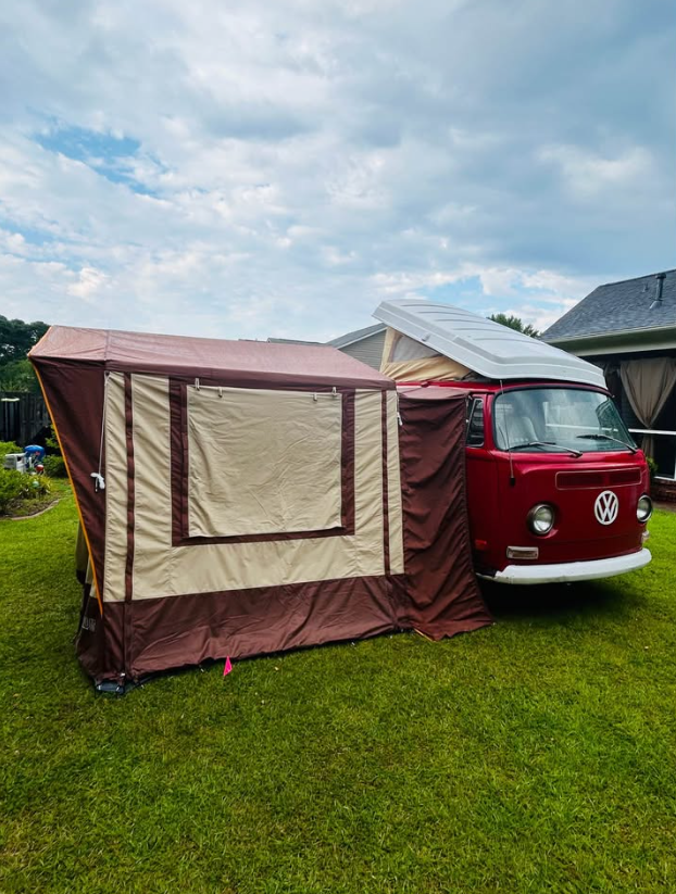1971 VW Bus Campmobile. Only 500 miles put on a brand new Rancho transmission installed last year. Always garage kept. New brakes, new paint, new flooring, clean NC title in hand, and tons of new interior and exterior parts and accessories. Includes the Bus Depot “Add a Room” tent specifically made for this model, used only one time. Also has the additional room inside a room for changing clothes, privacy, etc. Frame is straight as an arrow and solid as a rock. Recent tune up complete and always starts up and runs like a freaking top. A few bumps and imperfections around the body can be seen, but does not at all affect drivability or reduce the overall stoke. Reliable head turner that’s ready to roll!