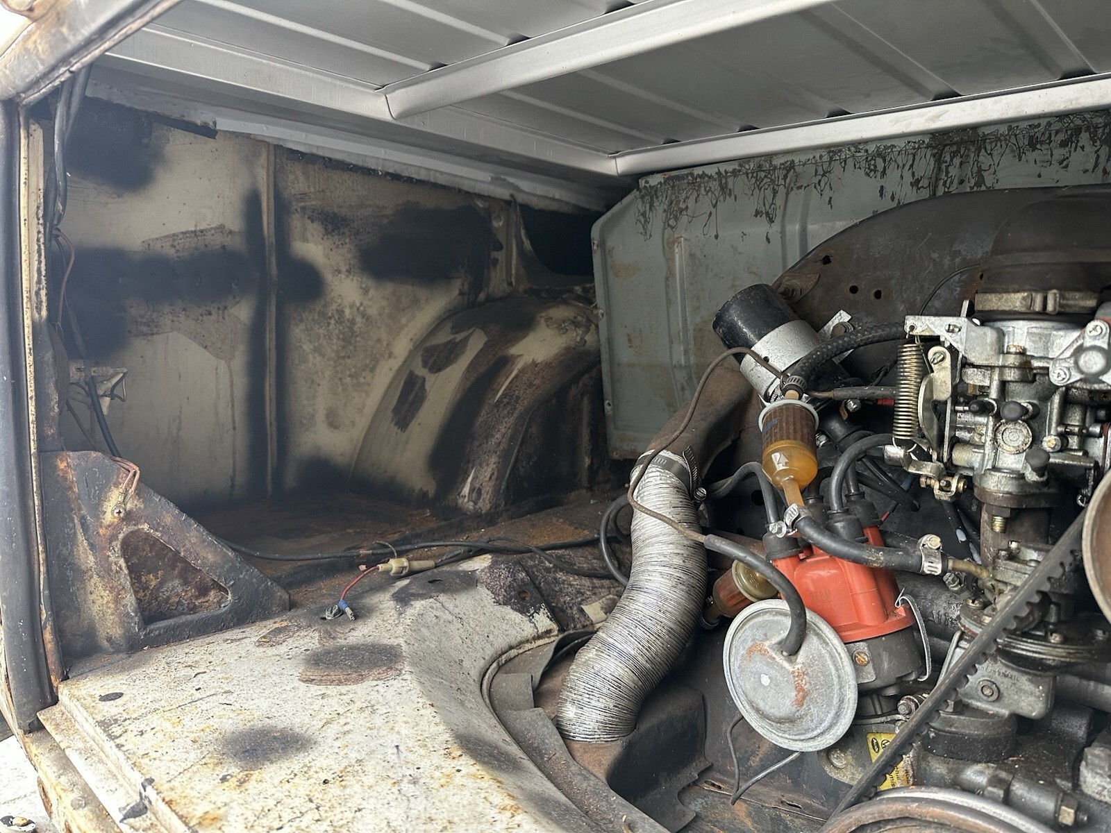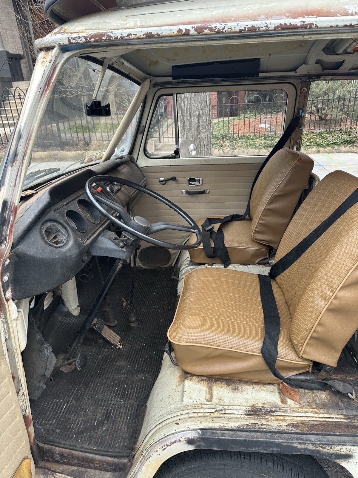 1969 Volkswagen Type 2 Camper Bus For sale is a 1969 VW camper van project. It runs much better than the rust would have you believe, the engine having been re-done by the previous owner. Refinished front seats, new cab mat, replaced the pop top tent, and refinished the fiberglass top in an off-white polyurethane. New floors that I welded in myself (see pictures). Gutted interior is included - the fridge/sink combo is in decent shape, as is the rear-facing single seat. All the hardware for the bench seat is there. Clean title. I can include a new Dometic RV fridge as part of the deal, along with a bunch of foam for use in new cushions, new water resistant fabric for use in upholstery, rolls of insulation, and the new cabinetry panels I cut out of marine grade plywood.