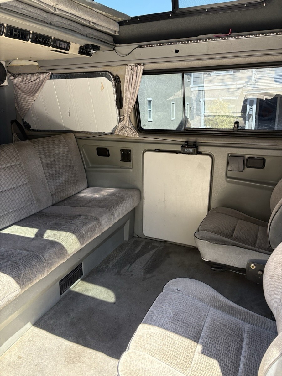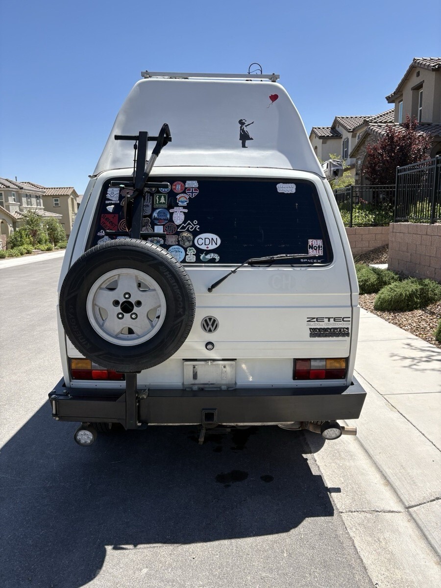 This 1990 Volkswagen Bus/Vanagon is a classic collector car with a unique design as a Van Camper. It has a gray interior, white exterior, and seats up to 7 people and can comfortably sleep 3-4. The new Ford Zetec engine has a current mileage of 60,000, this automatic van offers a fuel consumption rate of 18 mpg, making it a reliable and timeless addition to any collection of vintage Volkswagen vehicles. It has a ton of cool upgrades to the van such as, full AC, custom lighting, bluetooth stereo, dual battery set up, built in phone chargers, and an awning for hot days! Mechanically it still has a transmission under warranty, zetec engine swap, new shocks and suspension, and many other upgrades to make this van run smooth! I’m confident in driving this Van across country and international as well!