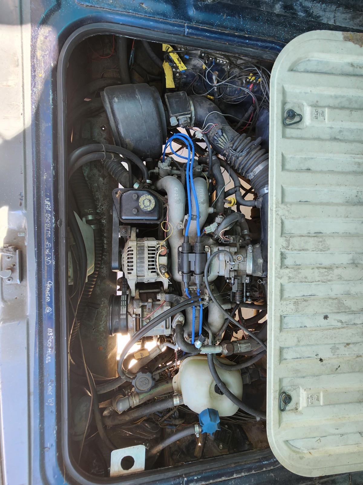 The 1989 Volkswagen Bus/Vanagon 4 door Micro Bus Panel Van is a unique collector car with a gray interior and blue exterior. This minivan features 3 seats, automatic transmission, and 4 cylinders with a 2.2L engine size. Manufactured in Germany, this van includes safety features such as fog lights, power windows, folding mirrors, air conditioning, power steering, and automatic wiper. 119,835 miles on the odometer, this vintage vehicle is sure to be a standout addition to any car collection. Great use for business logo on the panel sides.Offered as is where is. No warranty No guarantee. Check once cleared. Bank wire transfer. 1989, Volkswagen Vanagon panel van EJ 22 Subaru Video will open in a new window |