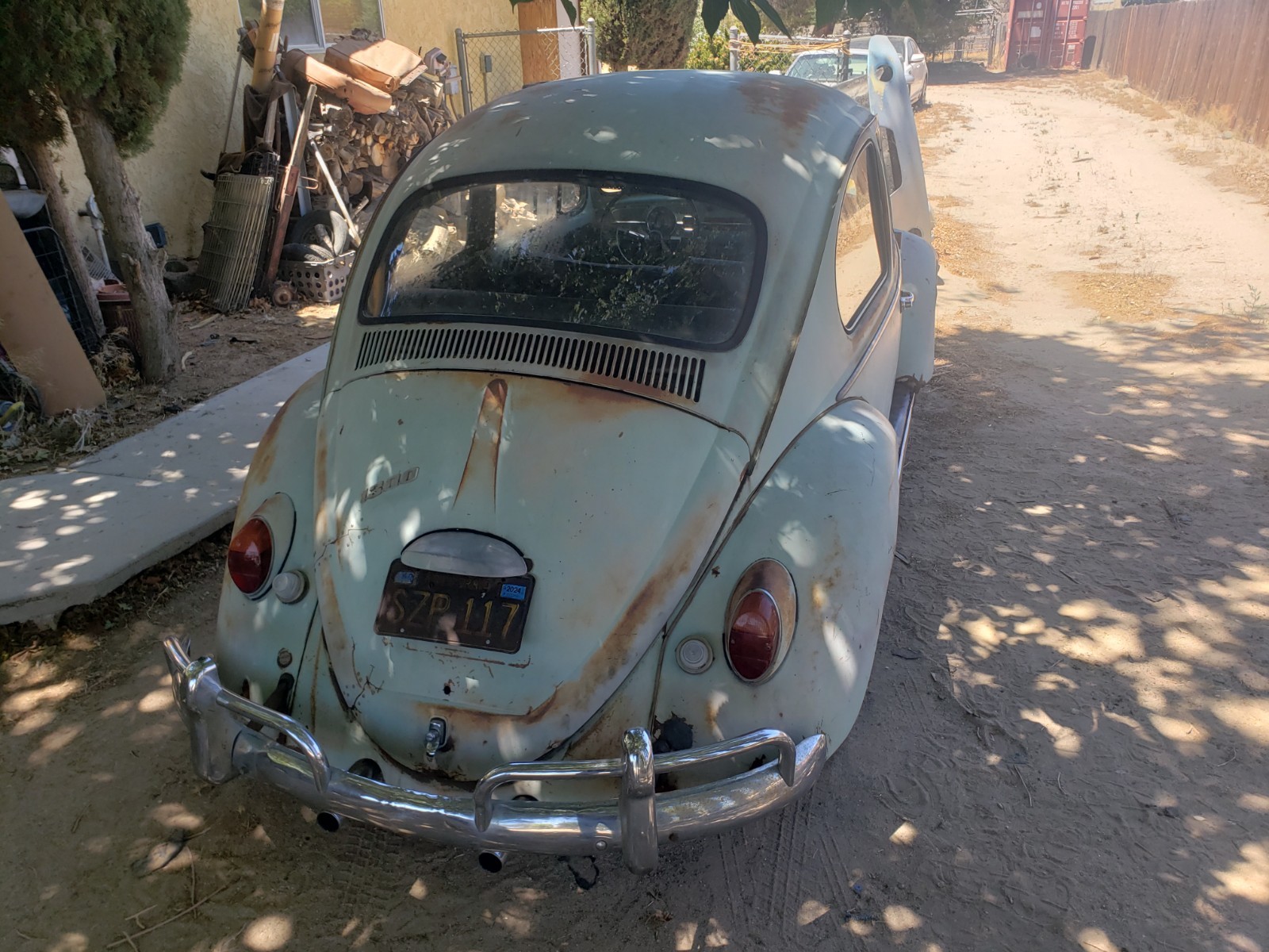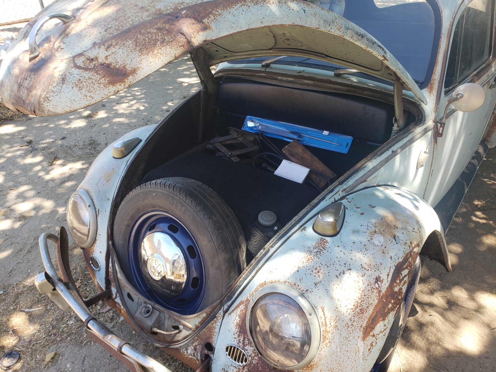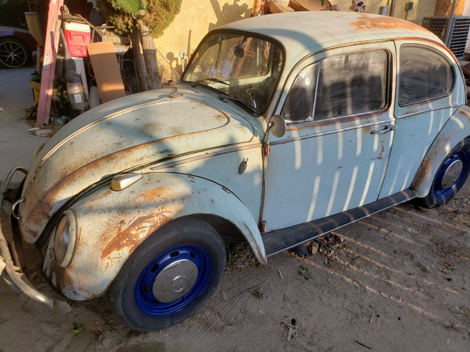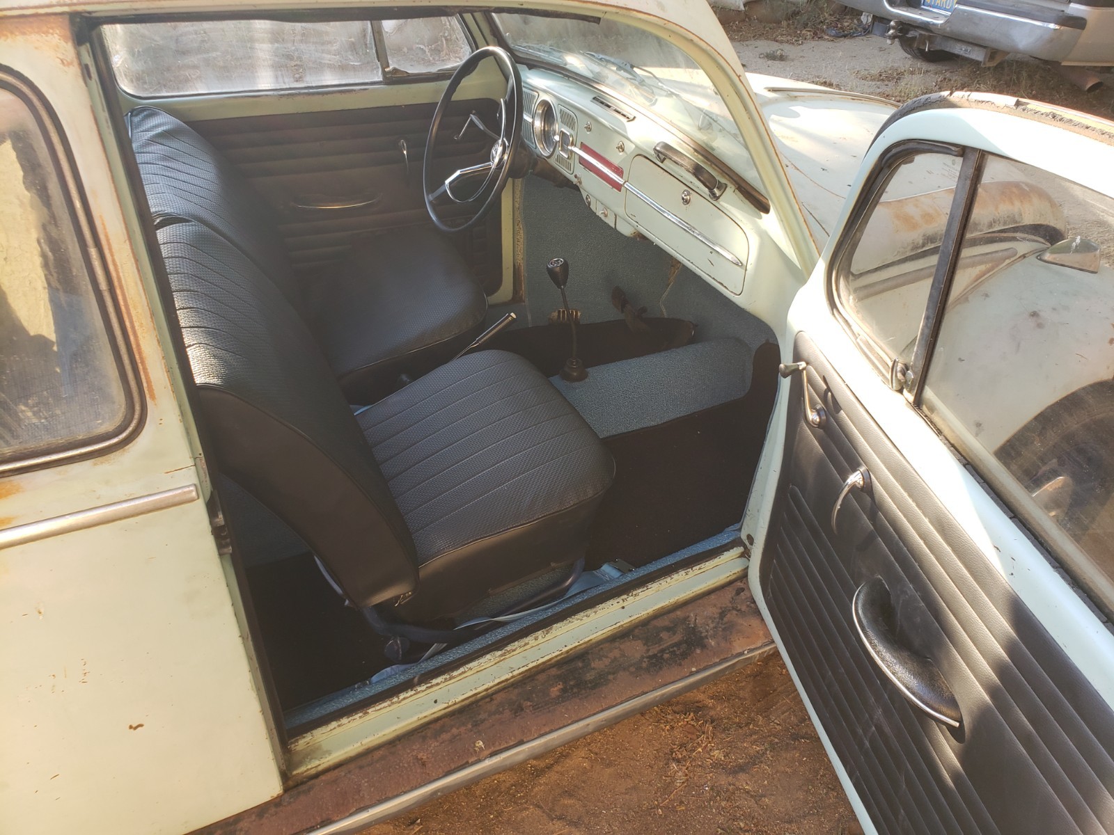 Up for sale is a 1966 VW Beetle (Bug). I purchased this car some time back, with the intention of restoring it, but have buried myself in too many projects (again), and I have to let this one go. Upon purchasing the car, I was told it had only been sitting for a short while, so I added new oil, and new fuel, and it fired right up. It has a very durable Optima "red top" battery, which easily starts the car. I noticed the "Generator Light" was on when it first started (which is great, as it shows it works), but once you rev it a little bit, it goes out, and stays out, again ... as it should. I started with the interior first, and hadn't gotten to the engine yet, but since it runs so well, there was no urgency, and I'm sure with a minor adjustment to the carburetor, or tightening of the belt, this "gen light" issue will easily be resolved. Regarding the interior, the car has new "tar boards" under the carpet, new carpeting throughout, new front seat covers and new front seat cushions. (Please note, the front driver's seat seemed a little wobbly, and I identified a small piece of metal missing at the bottom of the seat. The seat appears to work fine, but the new owner may want to address this. (I will point it out once we meet). New visors, new door panels, new seat belts, a new back seat cushion and back panel. The rear seat has a small "ripped and glued" area near the front edge. Nothing too bad, just wanted to point it out. I have a set of new rear seat covers, that I will include with the purchase, so the new owner can replace the cover, (if so desired). Rear backrest is not bolted in yet, but I have included the bolts required to do so (should be in glove box). The headliner is a little worn but nothing too distracting. The glass is all intact, but the driver's window, although easily lowers, has a hard time going back up. It seems like the gears are slipping or something, and you may need to help it a little to get it closed. I'm sure an easy fix, I just didn't get around to fixing that yet. Also, one of the "wing window latches" is missing. I have placed two new ones in the glove box, so all the new owner needs to do is drill out the rivets on the old ones and replace the new ones with screws. Regarding the exterior, the hood (trunk) area also has new carpeting, and a new electrical wiring cover, which really cleans up that area. The original jack is under the hood, along with a lug-nut breaker bar and prybar for hubcaps. The engine and engine compartment look clean (as stated before, I haven't done anything to the engine yet, except for the oil and fuel). The car comes with five (5) original wheels and hubcaps (which, I'm told are hard to come by), and all tires seem to be holding air. The car has some dings, dents, and scratches, but nothing too extensive. The worst being the front right corner, where it looks like it hit something. I do not see any damage to the chassis, just cosmetic. The hood does not close completely though with the spare tire in it, So I currently have it bungeed in place. Looks like a couple well placed welds, a few minor hammer blows, and a rope-tug on the front corner, and this thing will be close to new again ;-). It should be a super fun and somewhat easy restore, and once completed, the car will be worth twice as much. Or just drive it as is and enjoy the patina. As indicated earlier, I have not done a thorough run-through of the engine, or any of the mechanicals, just simply because I hadn't gotten that far yet. I did replace the front brakes though (new rotors, pads, and calipers), also bled the brakes, but I have only driven it a couple miles or so, and although it did fine, and likely able to make it across town, I would strongly suggest you trailer it home initially, so you can do your own thorough inspection, before taking it on any long trips. It should be noted; I am selling the car in "AS-IS" condition, without any guarantees or warrantees of any kind. Once it leaves my place, it's yours ... No Returns. Please do your due diligence, and ask as many questions as you like, and I will do my best to answer as quickly as possible. Or if you want to see it, let me know, and we will figure something out. I can't recall if all the lights work, but I think one headlight is out. Also, there is an added switch (on the dash) which operates the hazard lights and makes it easy for towing. Good gas mileage -- No smog -- Cheap and easy to maintain -- Fun to drive -- Current registration -- Title in hand I wish you all the best of luck.Thank you for your interest. P.S. (I am asking for a deposit to secure your purchase. Please submit thru the "secure payment process" Ebay offers, or thru PayPal. Once received, we can make arrangements to exchange the balance and paperwork.)