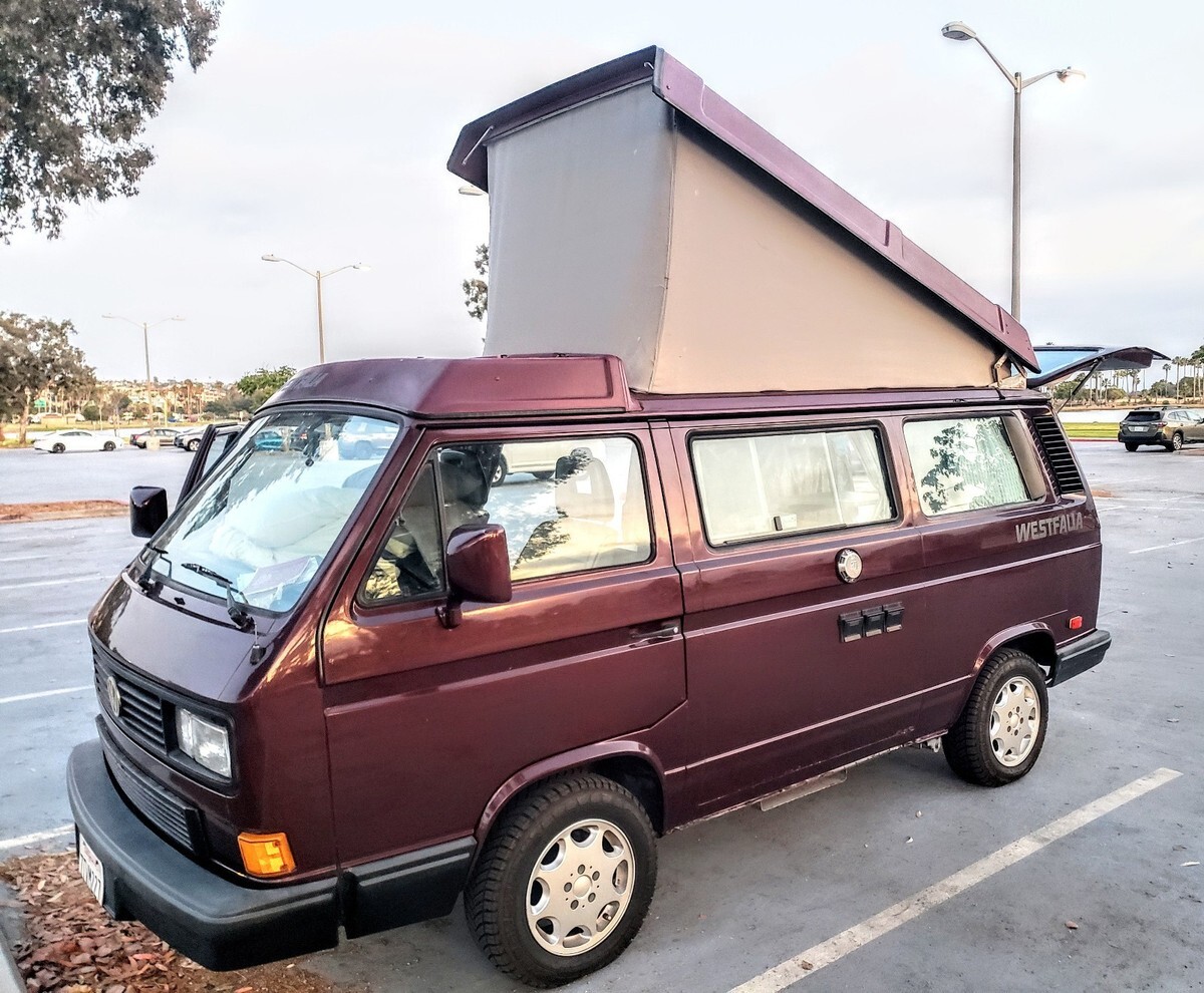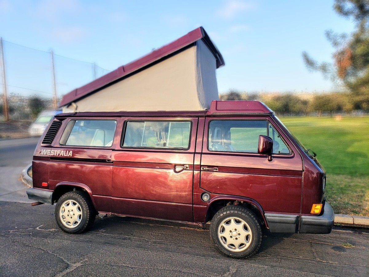 90 VW Full Camper Westfalia. Rare Automatic Transmission. I've had the priveledge of loving and caring for Ruby for 10 years. She runs great and we've enjoyed many adventures throughout the Southwest. Vehicle Details Up for adoption is my beloved Ruby. She runs and looks great. Original time capsule. Everything kept original whenever possible. Automatic Transmission. Always passes CA Smog without issue. Message for link to photo album. These iconic vans continue to appreciate in value which is fantastic for owners compared to most vehicle's depreciation schedules. Vanagon Westfalias won many awards and are acclaimed as the best layout and roomiest camper van ever available. The versatility is unmatched with 8ft plus head room when you need it and stealth mode when required. Both front seats swivel and 2 tables swing where needed and easily stow when not in use. The rear table's custom solution allows access to horizontal cupboards while in any position. The rear bench easily folds to a bed which is even more comfy with the custom topper and matching down full set up. The AC compressor was removed (included) as these AC systems did not come equipped with dash blowing cooling and were very finicky and never effective. The removable face Kenwood stereo with remote worked and when I bought in 2010, but I perfer silence and have not used it since. It is all included as well as the owners manual. The new vinyl tent canopy top upgrade was installed just before I it, but is still in perfect condition. A water tight durable option over absorbant cloth tops with zippers and screens. Top skylight provides adaquate ventilation. All upolstry is in great condition besides one minor light mark on bench seat as noted in picture. See "seller's notes" section for minor exterior cosmetic items that you may want to fix, or just keep an eye on. Thoughtfully added many storage solutions without piercing her. Everything essential for use organized well for efficient use of space and accessibility. My "perfect fit wins" discovered from my 25yr love affair with Bessie (my 85 Westy) have been shared with Ruby. The top bed is included but currently removed for custom storage solution, great for clothes. Four additional collapsable storage cubes for clothes, shoes and gear that fit perfectly in many areas of Ruby including under fold down seat, on top of closed stove counter, front wheel wells and seats and behind bench seat. Rear tailgate has custom solution that allows airflow while being locked. Solar panel solution folds out and is concealed in recessed luggage rack on top. Set of glass jars and containers that fit perfectly in cupboards to maximize storage space and provide easy slide out access. Fridge works great and also has perfectly fit set of glass jars. Motion sensor lights in cupboards and fridge for easy access anytime of day (without holes made in cabinetry). Memory foam topper for bed as well as cover, sheets, down comforter, pillows and cases with everything matching interior. Old school Club for steering wheel as well as kill switch for security. Stove works great and comes with pot and pan that fits perfectly into sink for stowage. Custom cube for storage of matching trash can, spring water, rinsing squirt bottle and cleaning squirt bottle of vinegar and water, bags and rags. Matching storage bag that perfectly fits in roof top cargo hold and bungees to secure. Custom heat and privacy shades for front and back windows as well as original curtains all the way around in great condition. Secure ceiling hooks installed without piercing for hanging produce bags, bannanas, hats, etc. Matching shopping bags that fit perfectly in driver's door cubby. |