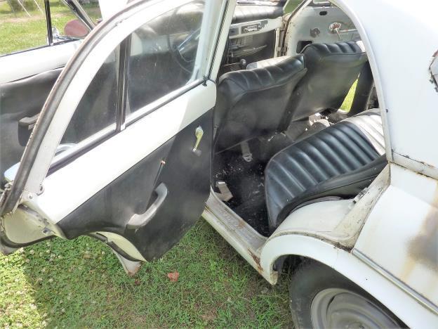 Volvo 122 4 door. I bought this car in Galax, VA about 2 years ago. It had been in accident 6 years ago. The driver fender was bent and the hood sprung. The owner took it to a local body shop and they removed the fender and grill section. Then they remembered they couldn't find parts in "Duckburg". It sat at the body shop for a time and the owner had it towed to his carport. It sat there for 4 years waiting for me. I had it flatbedded to my house. I found the missing pieces and bought them. The car has rust in the floors, trunk floor, rear above the bumper. AND probably other places. The seats have been redone. The top of the back seat is bad. Does it run???? I took the SUs from my other Volvo and put them on the car. I didn't want to deal the carbs on the car. I knew my set was good. Gas from a can and BINGO!! The engine sounded great. The front calipers were in the trunk and the clutch cylinder needed a rebuild. I didn't drive the car. I did run it for about 20 minutes and it sounded like a Volvo. I also had some floor sections and trunk section cut from a wreck. Never installed them - they come with the car. The car has a VA title. NO RESERVE |