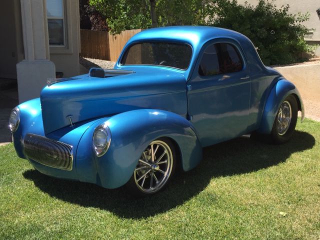 | 41 WILLYS COUPE350 CHEVY SMALL BLOCK, 350 TRANSMISSION,17'' BILLET LEGACY REAR WHEELS, WITH HOOSIER PRO STREET TIRES,9" FORD REAR END,WITH 4 BAR, AND DISK BRAKES, FRONT IS A 6" DROPPEDAXLE, WITH SPINDLE MOUNT FRONT SPOKE WHEELS,ALL BLACK DIAMOND TUCK INTERIOR, VERY NICE,A GREAT RUNNING AND DRIVING CAR FOR THE MONEY.SELLING FOR MY BROTHER, SO CALL CASEY AT 970-270-7883TITLED AS 41 WILLYS |