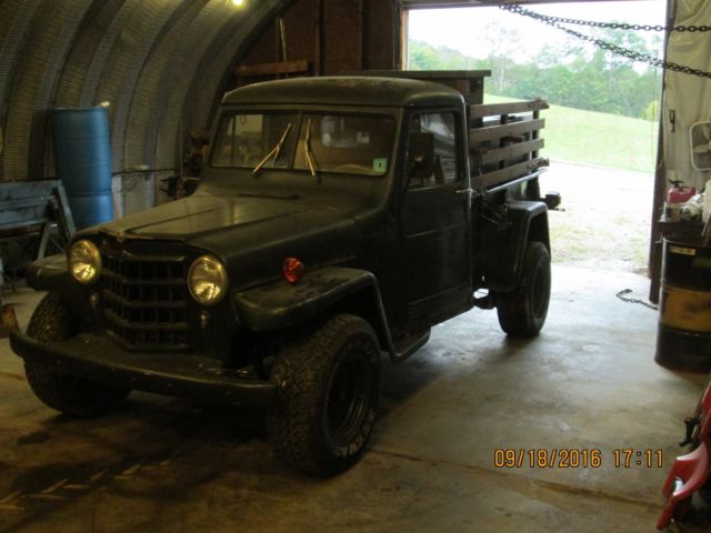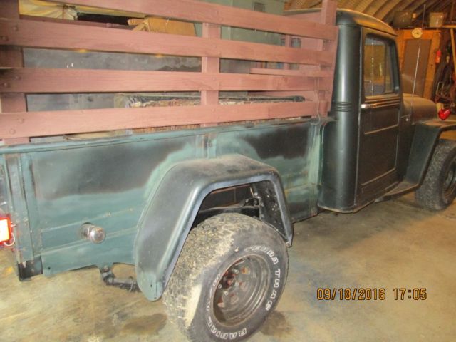 1952 Willys 473 Pickup. Partially restored. It has a 161 hurricane 6 cylinderengine out of a willys station wagon that was in it when I purchased it. It runs, starts right up, handles good.It had the frame replaceda solidfactory frame. New Shocks, Brake lines, Parking Brake cables, Brake drums, Clutch, Wiring harness, Lights, Mechanical gauges, all new bed cross members and 1/8" diamond plate steel be floor installed. I got itrunning driving and mechanical sound, Thenrun out of money and time. The body needs some worksee pictures,passenger side window broken.