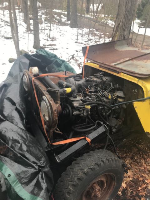 Hate to do this, I've got a lot of money in to this. But life hits and you got to sell stuff sometimes.1947 CJ2A JeepRunning Mercedes 1985 5 cylinder turbo diesel (om617). 60k miles.Mercedes automatic transmission.Needs shifter to drive.Needs fuel tank.Have all the steering that just needs to be installed.Tubs in good shape, just needs some minor welding.All rust you see is surface, was planning to blast everything and paint but I just don't have the time anymore.Questions and request for more pictures are welcomed!I have the vin plate, but no title as I was planning on taking car of it once it's finished
