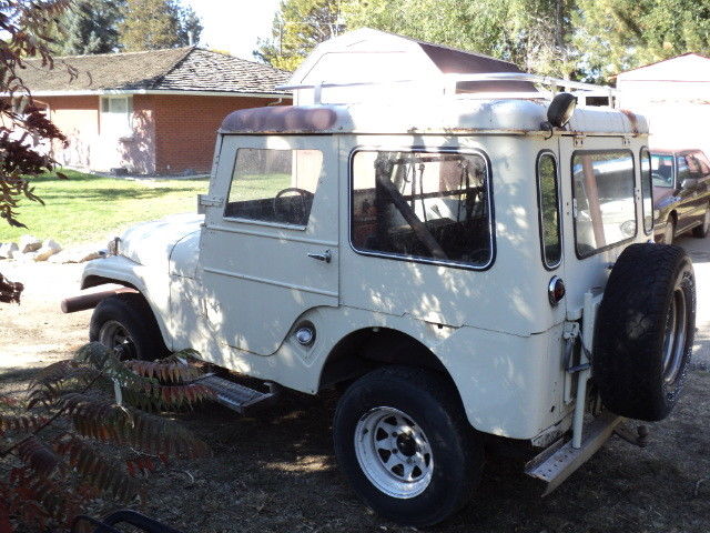 | THIS JEEP NEEDS RESTORED IT HAS BEEN SITTING FOR 21 YEARS IT WILL RUN WITH ASSISTANCE BY ADDING FUEL TO CARBURATOR THEN WILL RUN ON ITS ON,LOUD EXHAUST,LEAKS WATER BETWEEN ENGINE AND TRANSMISSION COULD BE FREEZE PLUG,SURFACE RUST IN FLOORS FRONT ONLY BUT NOT THROUGH PRETTY CLEAN OTHER WISE.THE HUBS ARE FREE AND THEY LOCK IN.OVER ALL BODY AND PAINT NORMAL WEAR,SCRATCHES ETC. GLASS GOOD EXCEPT FOR PASSENGER SIDE REAR.TOP COMES OFF.WILL HAVE TO BE TRANSPORTED.CLEAN OLD JEEP.THANK YOU |
